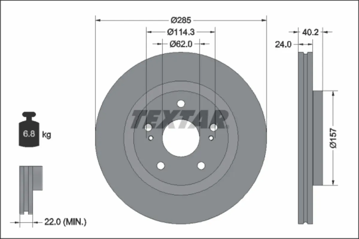 TEXTAR - EAN: 4019722567957 - Bremsscheibenart: innenbelüftet; Außendurchmesser [mm]: 285; Bremsscheibendicke [mm]: 24; Höhe [mm]: 40,2; Mindestdicke [mm]: 22; Oberfläche: beschichtet; Innendurchmesser [mm]: 147; Lochkreis- [mm]: 114,3; Zentrierungsdurchmesser [mm]: 62;... - bei autodoc.de - aus Yadore Produktdaten Dieses Angebot ist eine weitere günstige Möglichkeit, eine einzelne Textar Bremsscheibe PRO zu erwerben. ![]() ![]() 92337303 TEXTAR - Bremsscheibe PRO