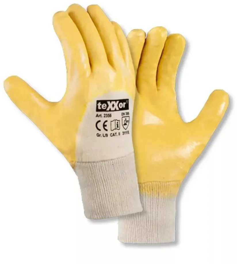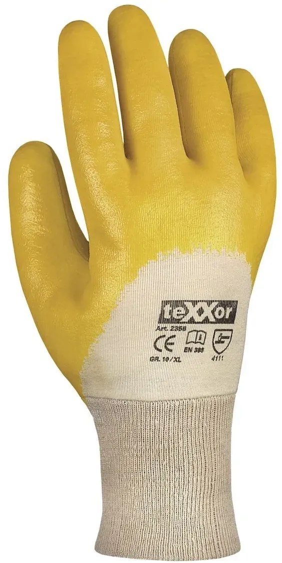 Texxor 2356 META PreisvergleichMit dem Meta-Preisvergleich suchen Sie gleichzeitig bei den großen Preisvergleich Portalen!Jetzt live Suche nach texxor 2356 starten! Texxor 2356 KaufberatungDer teXXor 2356 ist ein gelber Nitril-Handschuh mit 3/4-Beschichtung und Strickbund, der aus 100% Baumwoll-Strickgewebe gefertigt ist. Er bietet Schutz vor mechanischen Gefahren und ist wasserabweisend, geeignet für den Umgang mit Ölen und Schmiermitteln. Die Handschuhe entsprechen der PSA-Kategorie II und den Normen EN 420 und EN 388, was sie für viele Branchen wie Bau, Handwerk, Fahrzeugbau, Gartenbau und Logistik einsetzbar macht[1][4][6]. Wichtige Produktmerkmale und Beliebtheit:
