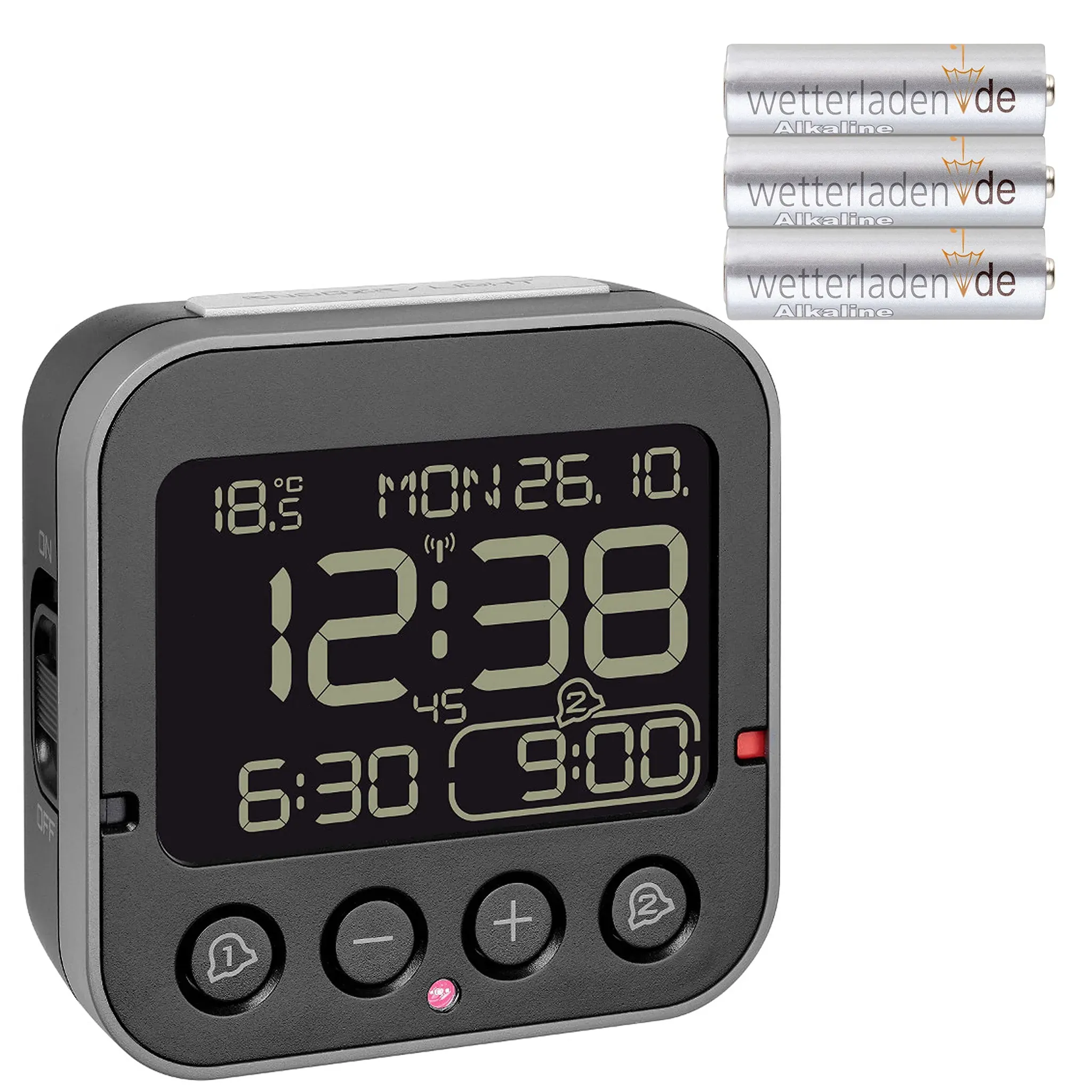 Auf Lager Versand durch AmazonTFA Dostmann Bingo 2.0 digitaler Funk-Wecker, 60.2552.01, invertiertes Display, 2 Weckalarme, Datum + Wochentag, inkl Thermometer, mit Licht, ohne Ticken, Funkuhr, L 95 x B 41 x H 96 mm, schwarz