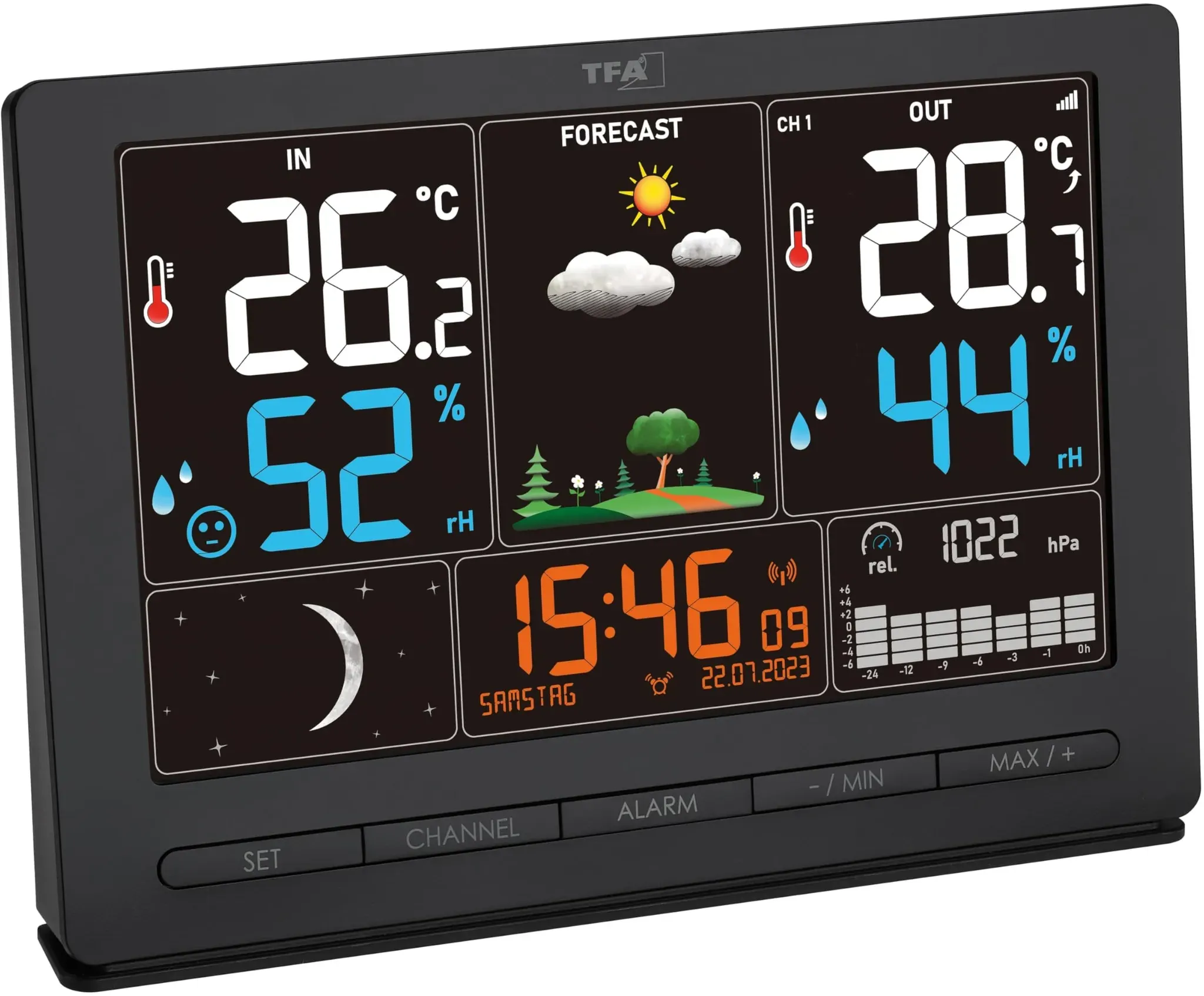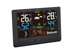 Auf Lager Versand durch AmazonTFA Dostmann Funk-Wetterstation Season 2, 35.1118, mit Außensender, Wettervorhersage, Farbdisplay, Temperatur und Luftfeuchtigkeit, inkl Funkuhr mit Mondphase, schwarz