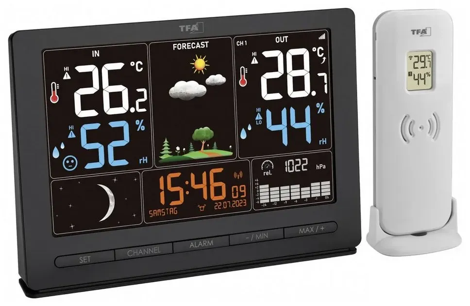 ? Was Sie beim Kauf beachten sollten| Kriterium | Hinweis | |----------|--------| | Messgenauigkeit | TFA gilt als zuverlässig, aber für Profi-Anwendungen sind zusätzliche Sensoren sinnvoll. | | Display | Farbdisplay mit Helligkeitsstufen - wichtig für gute Ablesbarkeit. | | Außensensor | Prüfen Sie Reichweite und Schutzart (IP65 empfehlenswert). | | Wettervorhersage | Lokal basierend auf Luftdruck - nicht so präzise wie Wetterdienste, aber sehr hilfreich für den Alltag. | | Design | Die Season 2 ist besonders dekorativ und eignet sich für Wohnzimmer oder Schlafzimmer. | | Stromversorgung | Meist Batteriebetrieb (AA/AAA), manche Modelle auch mit Netzteil. | | Zusatzfunktionen | Weckalarm, Mondphasen, Wetteralarm - je nach Bedarf sinnvoll. |