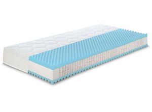 90 x 190 Taschenfederkern Wohnen Schlafzimmer Betten Matratzen Taschenfederkern-Matratzen 80 x 200 Taschenfederkern 100 x 200 Taschenfederkern 90 x 200 Taschenfederkern 160 x 200 Taschenfederkern 140 x 200 Taschenfederkern 180 x 200 Taschenfederkern übergroße Matratzen - - Hervorragende Körperanpassung durch 7-Zonen-Taschenfederkern Die Ocean Clean TFK verfügt über einen 12 cm hohen 7-Zonen-Tonnen-Taschenfederkern, der mit ca. 500 einzeln in Taschen eingenähten Federn (bei 100x200 cm) eine optimale Druckverteilung ermöglicht. Die spezielle Schulter- und Beckenzone sorgt für gezielte Entlastung und fördert eine gesunde Liegeposition. Hochwertige Geltouch-Auflage für optimalen Liegekomfort Die 4 cm starke Geltouch-Auflage passt sich individuell an den Körper an und verteilt das Gewicht gleichmäßig, um Druckpunkte zu minimieren. Das Material bietet eine sanfte Entlastung und unterstützt ein angenehm trockenes Schlafklima durch seine atmungsaktiven Eigenschaften. Abnehmbarer Bezug aus recyceltem Polyester Der Bezug der Ocean Clean TFK besteht zu 58 % aus recyceltem Polyester, wodurch aktiv zur Reduzierung von Plastikmüll beigetragen wird. Gleichzeitig bietet das Material eine angenehme Haptik und eine hervorragende Feuchtigkeitsregulierung. Vorteile des Bezugs: - Hergestellt mit hohem Anteil an recyceltem Polyester - Atmungsaktiv feuchtigkeitsregulierend für ein angenehmes Schlafklima - Weiche und strapazierfähige Oberfläche für langanhaltenden Komfort Praktischer ... ![]() 366994 / DE- Billiger- baur.de Taschenfederkernmatratze HN8 SCHLAFSYSTEME 'Ocean Clean TFK', blau, B:120cm H:21cm L:200cm, Bezug (oben): 100% Polyester. Bezug (unten): 89% Polyester, 11% Polypropylen. Steppfüllung: 100% Polypropylen, Matratzen, Taschenfederkernmatratze