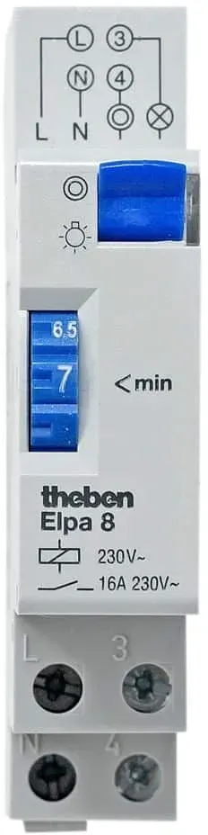 16 Händlerangebote bei billiger.de - Kategorie: Sonstige Elektroinstallationsartikel - Theben - Reiheneinbau-Treppenlicht-Zeitschalter (TLZ), Breite 1 TE, nachschaltbar, Tastereingang, 3-und 4-Leiter-Anschluss, Dauerlichtschalter - GTIN:4003468010068 Dieses Angebot ist ein sehr preiswerter Theben ELPA 8 Treppenlicht-Zeitschalter, der sowohl für 3- als auch für 4-Leiter-Installationen geeignet ist. ![]() ![]() Theben Treppenlicht-Zeitschalter - ELPA 8, eBay elektromechanisch, 4-Leiter, 3-Leiter