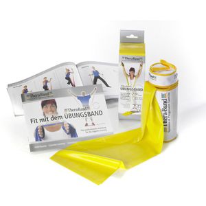 THERABAND - EAN: 4260071630759 - . 1,3 kg Kraftaufwand bei Dehnung des Bandes um 100% . Ideale Trainingslänge für optimales Arm- und Beintraining . 2,5m x 13,8cm Meterware - kann auch nach Bedarf individuell zugeschnitten werden . Aus Latex hergestellt - besonders hautfreundlich & dennoch belastbar . Zum Widerstandstraining für Kraftaufbau & Verbesserung der Koordination . Inklusive praktischer Reißverschlusstasche Merkmale: Widerstand: leicht Farbe: gelb Ausführung: Set Länge ca.: 2,5 m weitere Produktinformationen: Lieferung: inkl. übungsanleitung, Transporttasche Inhalt: 2.5m - bei bueromarkt-ag.de - aus Yadore Produktdaten Dieses Original Thera-Band kommt mit Tasche und Übungsanleitung für 12,99 Euro, was ein gutes Gesamtpaket darstellt. ![]() ![]() Original Thera-Band - 2,5m mit eBay Tasche & Übungen Gymnastikband Übungsband Fitness