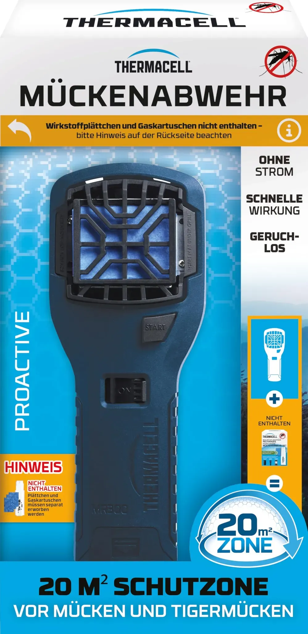 Zustand: Neu - Moskitoschutz - Thermacell SBM Life Science - 86601788 - EAN: 3664715077701 - Im Lieferumfang enthalten ist ein Thermacell Proactive Handgerät. Die zur Verwendung erforderlichen Thermacell Mückenabwehr-Sets (Wirkstoffplättchen und Gaskartuschen) fallen in Deutschland seit dem 01.01.2025 unter die Regelungen der Biozidrechts-Durchführungsverordnung (ChemBiozidDV) und dürfen nur nach vorherigem Abgabegespräch und nicht in Selbstbedienung abgegeben werden. Die Mückenabwehr-Sets (Wirkstoffplättchen und Gaskartuschen) sind in Deutschland in Baumärkten, Gartencentern oder im Landhandel nach einem Abgabegespräch erhältlich. Die europaweite Verfügbarkeit der Gaskartuschen und Wirkstoffplättchen ermöglicht es Ihnen die Mückenabwehr-Sets auch auf Urlaubsreisen im europäischen Ausland (z.B. Frankreich) zu erwerben. Das Thermacell Mückenabwehr Proactive Handgerät schafft zusammen mit den Mückenabwehr-Sets eine 20m² Schutzzone vor Mücken und schützt so auf effektive und innovative Art und Weise vor lästigen Mückenstichen im Freien, -ohne Cremes und Mückensprays auf der Haut. Thermacell wirkt geruch- und lautlos sowie schnell und stundenlang gleichbleibend zuverlässig. Thermacell wirkt in Minuten und schützt für Stunden. Die Gaskartusche erhitzt das Wirkstoffplättchen und in wenigen Minuten baut sich die Schutzzone gegen Mücken auf, in die Mücken nicht eindringen können. Thermacell sorgt für eine entspannte Zeit ohne lästige Mücken im Garten, auf der Terrasse, dem Balkon ... ![]() ![]() Thermacell Mückenabwehr Proactive MR 300 Basisgerät ohne Wirkstoffplättchen innovatives Mückenschutz Handgerät, optimal für Outdoor Aktivitäten wie Camping, Angeln oder Jagen