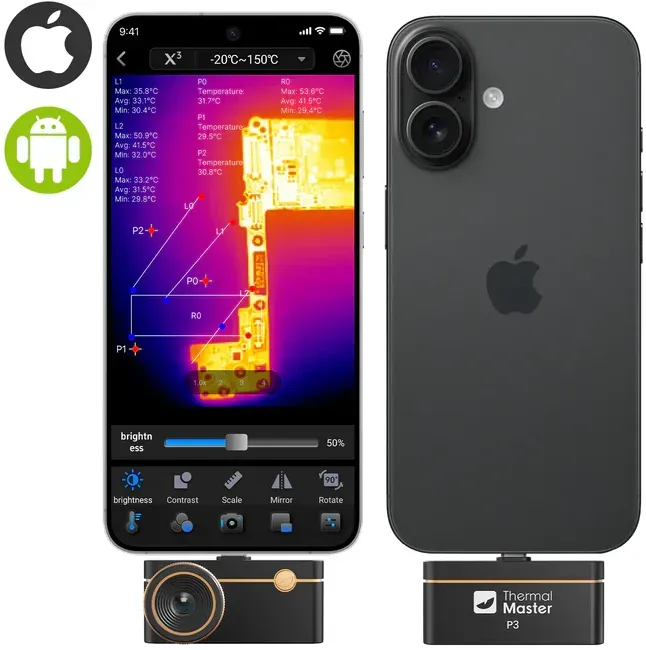 Thermal master p3 META PreisvergleichMit dem Meta-Preisvergleich suchen Sie gleichzeitig bei den großen Preisvergleich Portalen!Jetzt live Suche nach thermal master p3 starten! Thermal master p3 KaufberatungWas ist die Thermal Master P3?Die Thermal Master P3 ist eine kompakte, an Smartphones und Tablets anschließbare Wärmebildkamera, die sich besonders für Elektronik- und Leiterplattenanalysen eignet[1][3]. Sie zeichnet sich durch eine hohe thermische Auflösung (512×384 Pixel via X³IR™-Technologie), einen großen Temperaturbereich (-20?°C bis 600?°C), eine Genauigkeit von ±2?°C und eine manuelle Fokussierung aus[1][2][3]. Die Kamera ist mit Android, iOS (inkl. Adapter) und PC kompatibel und bietet zahlreiche Messmodi, Temperaturalarme sowie kostenlose Analyse-Software[1][3]. Was muss ich beim Kauf beachten?