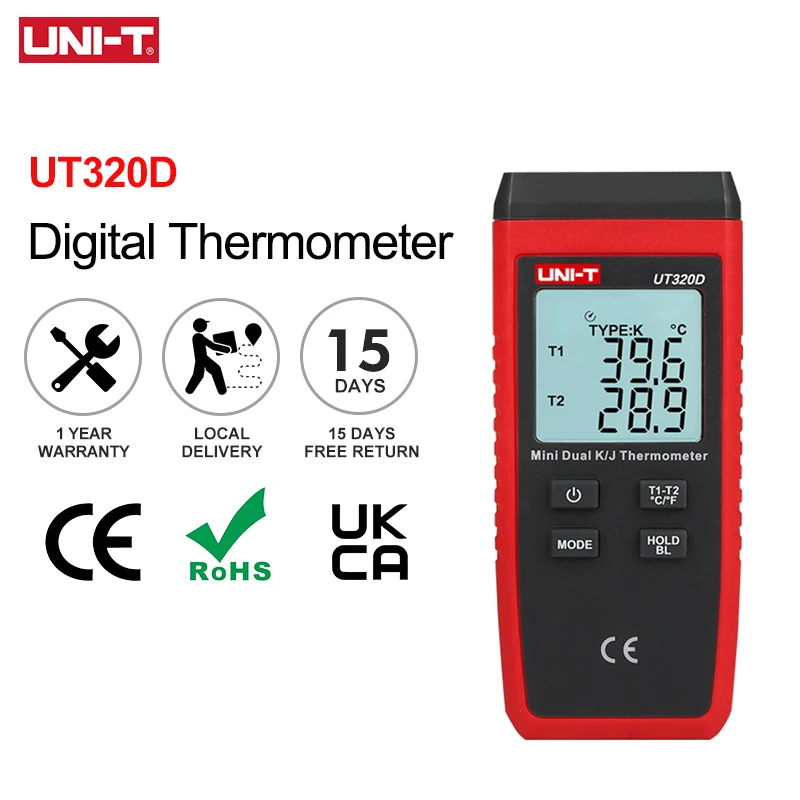 UNI-T - UNI-T UT320D K/J Thermoelement-Thermometer UT320A Mini-Digital-Temperaturmessgerät -50 ~ 1200 Kontakttyp-Thermometer - bei de.aliexpress.com - aus Yadore Produktdaten ![]() ![]() lmoikesz Digitales Thermometer mit ±1 °C Genauigkeit und Werksreset, elektrische Paar Thermometersonden für Multimeter 20 Tester, UT320A, 1