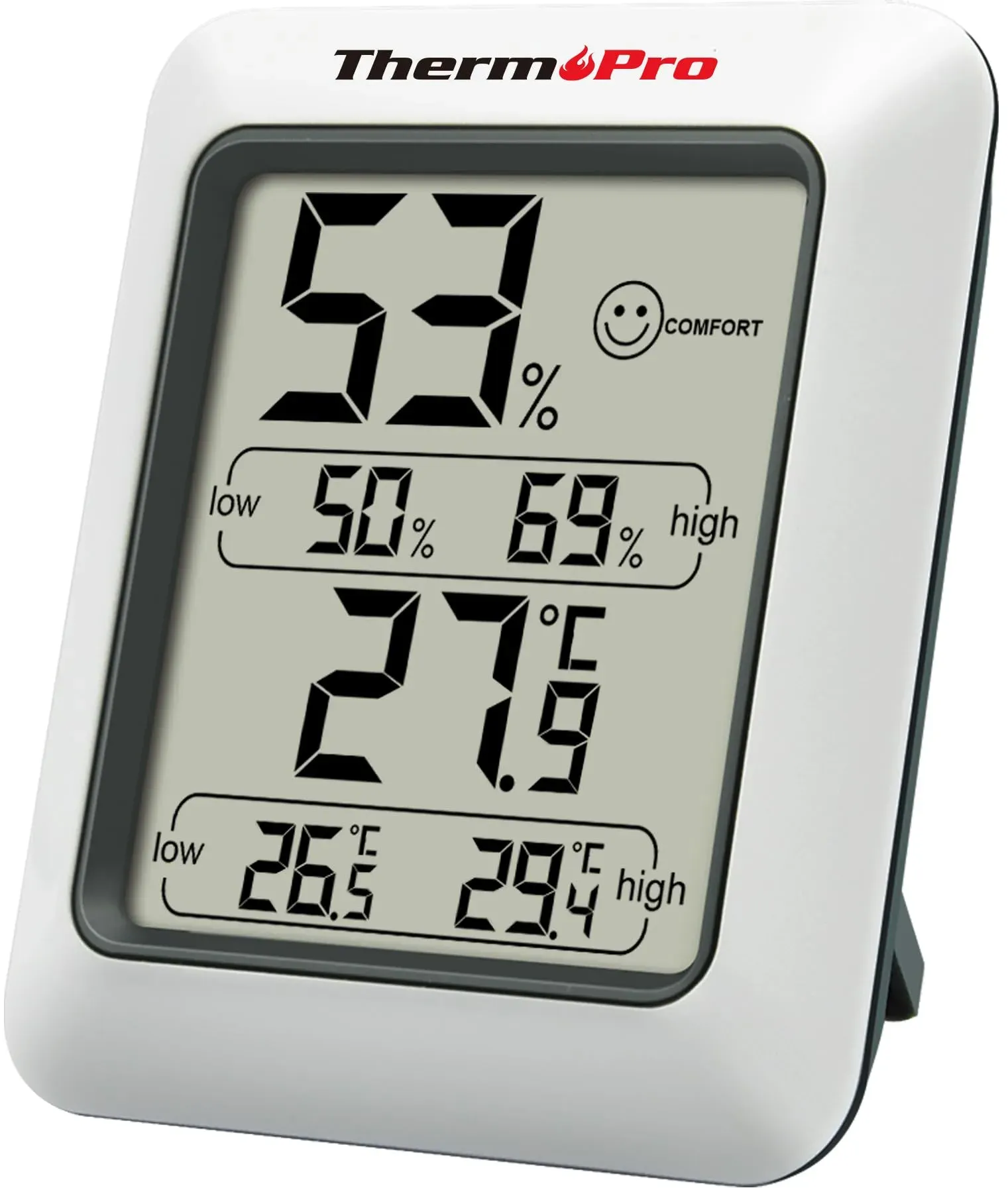 Auf Lager Versand durch AmazonThermoPro TP50 digitales Thermo-Hygrometer Innen Thermometer Raumthermometer mit Aufzeichnung und Raumklima-Indikator für Raumklimakontrolle Klima Monitor