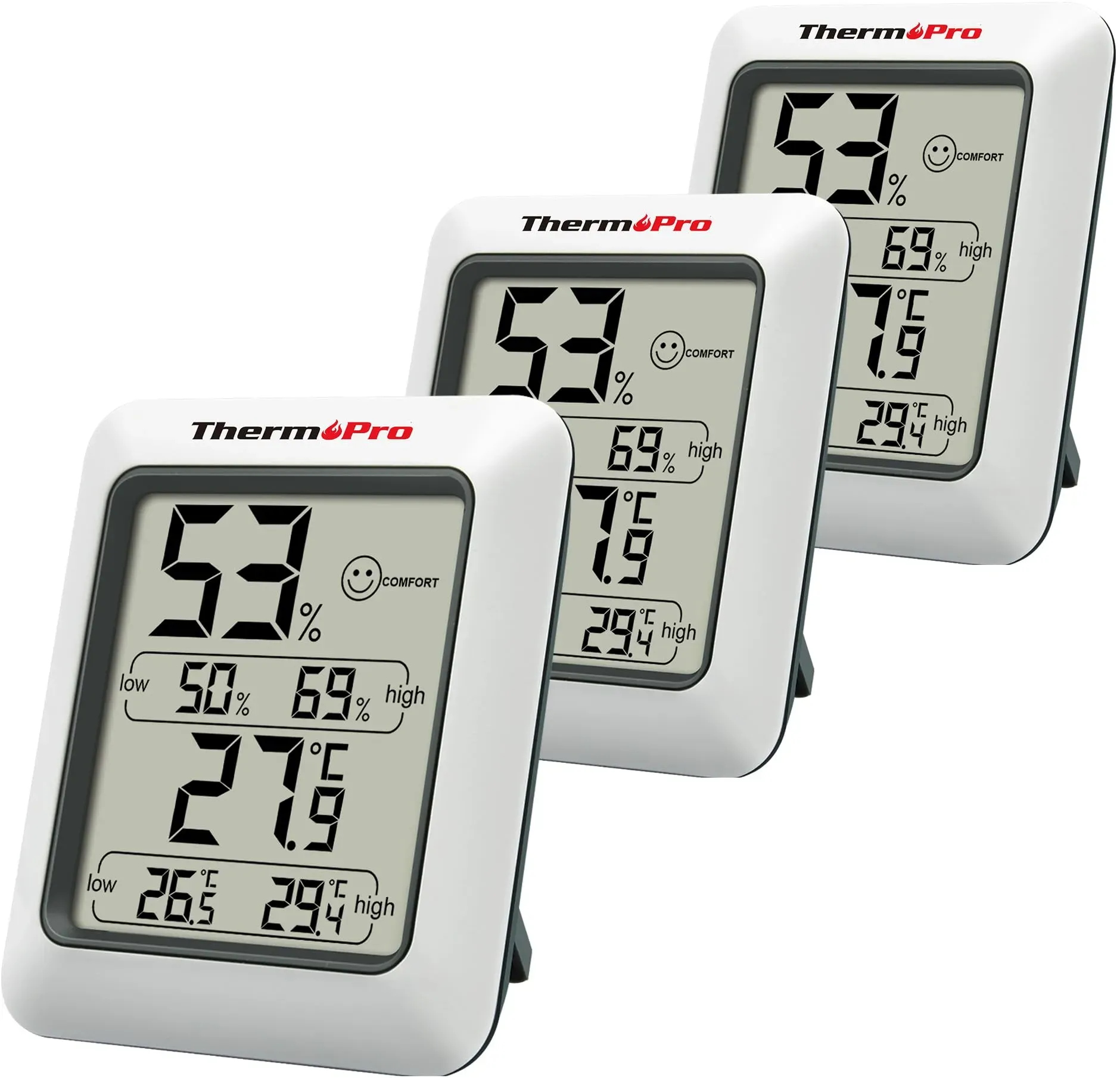 Auf Lager Versand durch AmazonThermoPro TP50 Digitales Hygrometer, Innen-Thermometer, Raumthermometer und Feuchtigkeitsanzeige, mit Feuchtigkeits- und Temperaturmonitor, 2 Stück