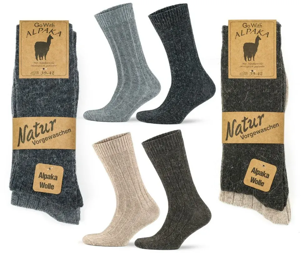 lieferbar-in 2-3 Werktagen bei dirGoWith Thermosocken Alpaka Socken Wollsocken Warme Thermosocken Warmhaltend Damen&Herren (4-Paar) 43/46