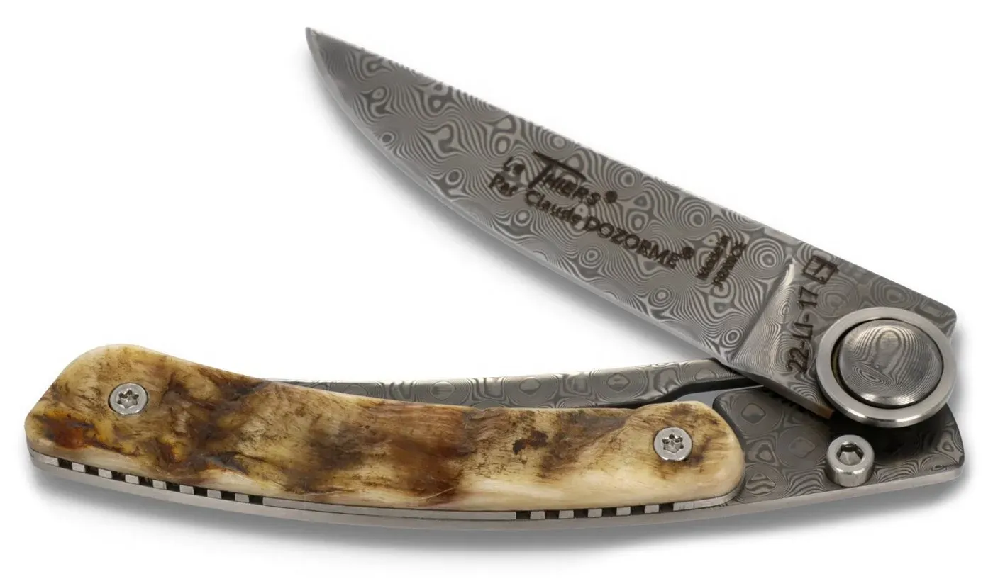 ![]() ![]() Claude Dozorme Taschenmesser 5.90.142.37D blonde, Le Thiers - Griff 10,5 cm Widderhorn - Balbach Inox Damast - LinerLock