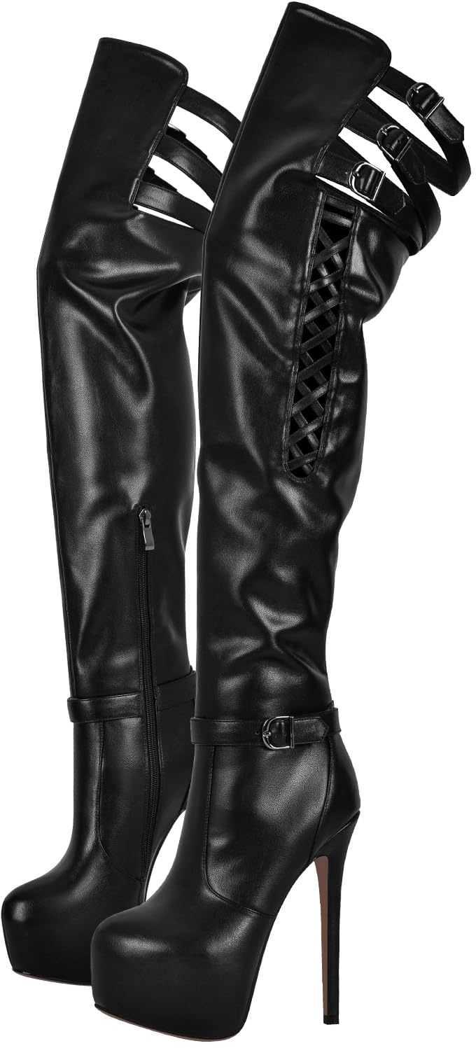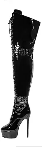 ![]() ![]() Meinabsatz Schnürstiefel Plateau Stiletto Stiefel Overknee Lace up Boots Thigh High Lack Schwarz 40 EU - 40 EU