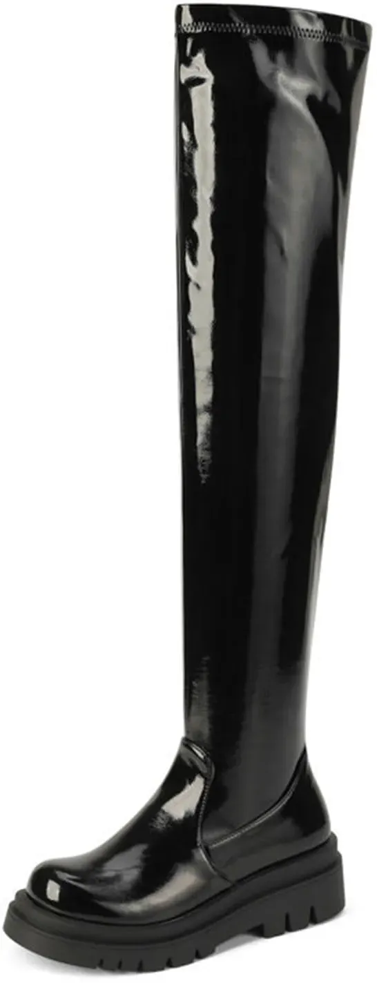 ![]() ![]() Only maker Damen Overknee Stiefel mit Plateau Blockabsatz Stretch Boots Gogo Thigh High Lackoptik Rosa 40 EU - 40 EU