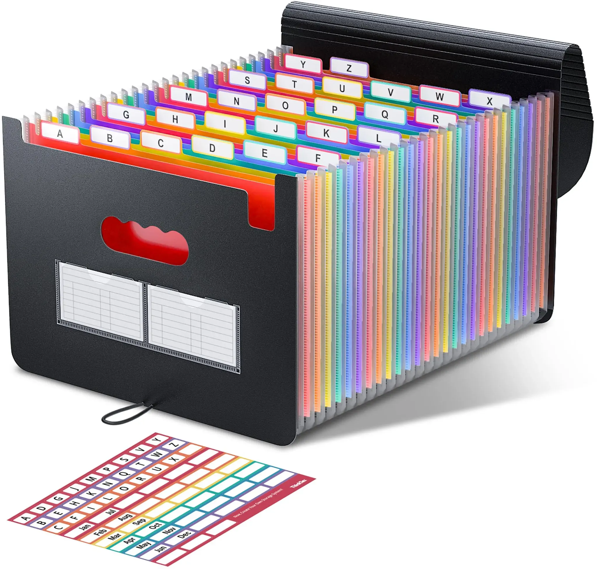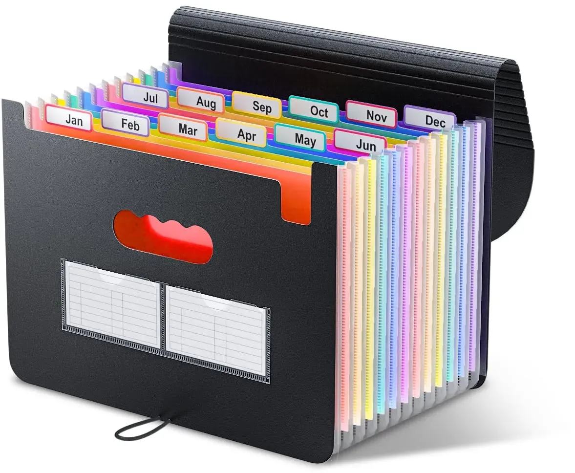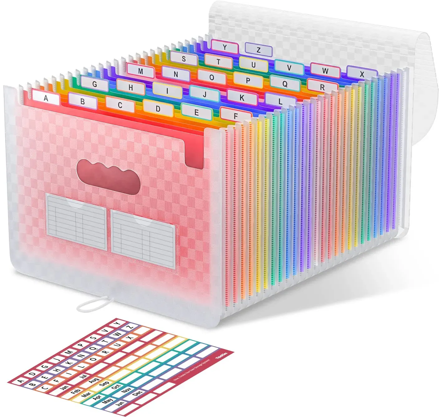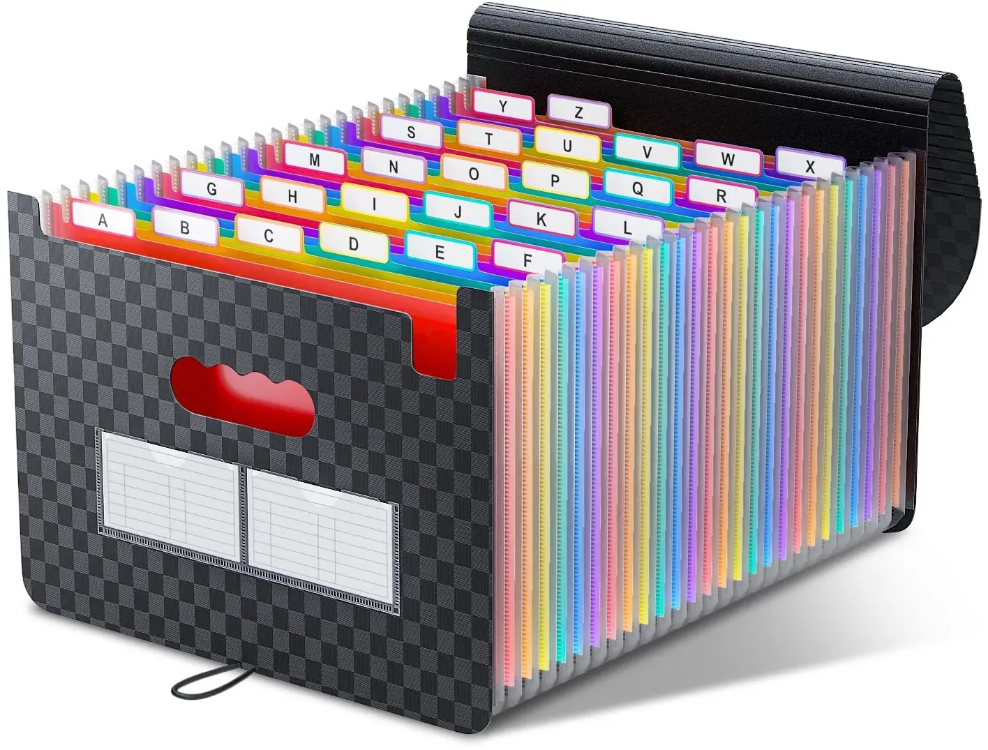 Kategorie: Aktentaschen - ThinkTex - GTIN:0782894471455 - MONATLICHE BILLENORGANISATION - ThinkTex Portable Akkordeanauskleidung, oben und unten erweiterbar, 12-Taschen und mehrfarbige Tabs, für Buchstaben/A4-Format GROSSE KAPAZITäT 12-Taschen, alles an einem Ort organisieren, erweitern und schrumpfen mit wachsenden Dateien flexibel. Geschlossener Boden sorgt dafür, dass Papiere im richtigen Schlitz bleiben SCHNELLER ZUGANG - Helle bunte Tabs mit monatlichen Etiketten, werfen Sie einfach einen Blick und finden Sie. Die Registerkarten sind klar und leicht zu lesen, nicht von Dateien verdeckt PERFEKTE EXPANSION - Flexibler Deckel ist intelligent gerissen und der eleastische Bandverschluss wurde in zwei Schlaufen unterteilt, für eine große Ausdehnung ERFAHREN SIE MEHR MöGLICHKEIT - Neben dem normalen Papierkram, Rechnungen, Quittungen, kann dieser Artikel auch verwendet werden, um Handbücher, Rezepte, Kinderkunst, Gesundheitsberichte, Vinyl-Blätter usw. zu organisieren. - 13,99 Euro bei Amazon Marketplace Automotive - gefunden von billiger.de Diese farbenfrohe Regenbogen-Akkordeonmappe mit 26 Fächern bietet eine hohe Kapazität und ist optisch ansprechend. ![]() ![]() ThinkTex 26 Fächer Dokumentenmappe A4, Regenbogen Akkordeon Erweiterbar Ordnungsmappe, Aktenordner mit großer Kapazität, tragbarer Klassifizierungsaktenordner im A4-Letter für Büro/Schule Rose