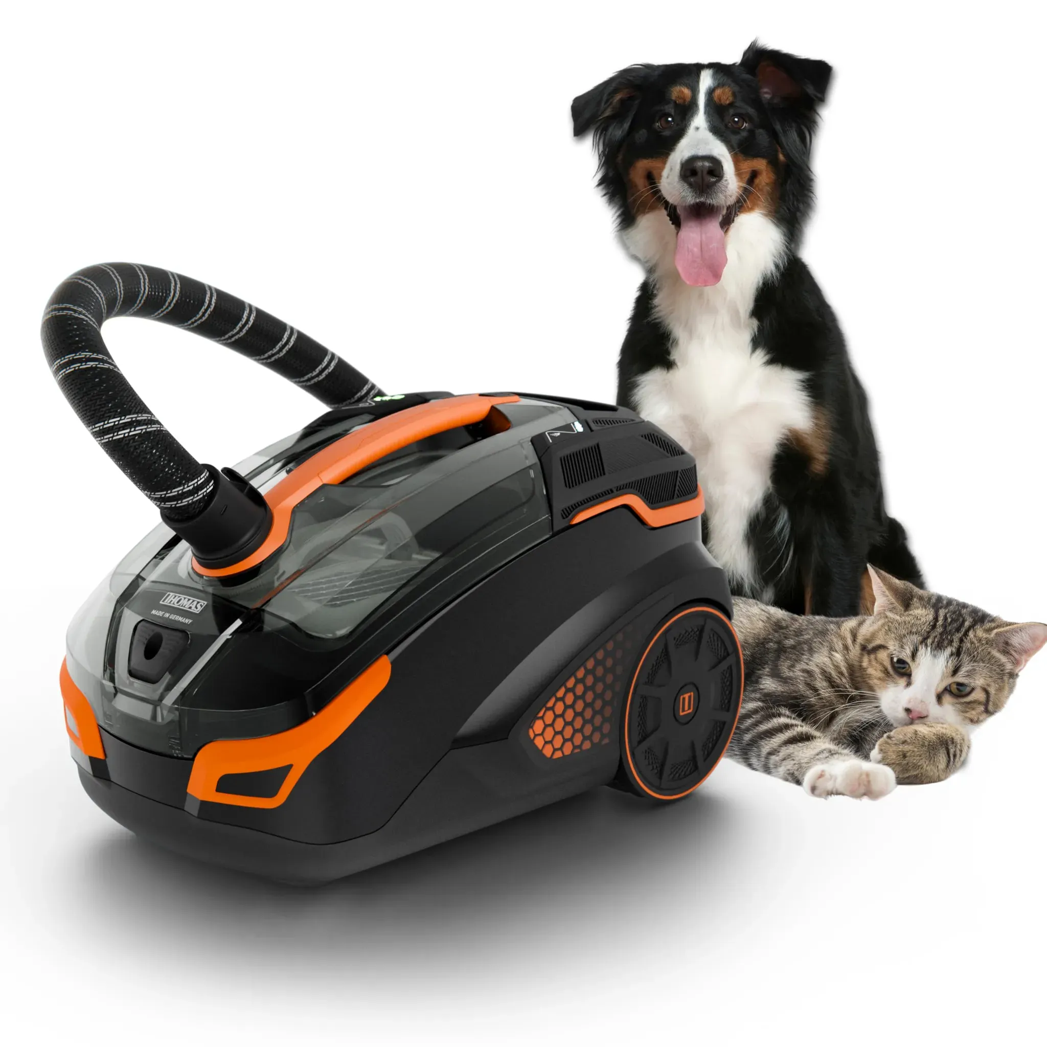 Haushaltsgeräte Haushalt Staubsauger Staubsauger ohne Beutel - EAN:4005435108976 - Überblick Der Spezialist zur Tierhaar- und Fleckentfernung Saugen ohne Staubbeutel Mit AQUA+ Technologie Umfangreiches Zubehör 1700 Watt Made in Germany Beschreibung Der Profi in der Tierhaar- und Feckentfernung. Mit innovatver AQUA+ Technologie. Saugt kraftvoll Tierhaare, Hausstaub und Milben und bindet diese zuverlässig und geruchsneutral im Wasser. Saugt, wischt und trocknet alle glatten Böden in einem Arbeitsgang und entfernt Flecken porentief aus Teppichen und Polstern Eigenschaften Trockensaugen, wahlweise mit AQUA+ FILTER-System oder Staubbeutel Spezial-Sprühdruck-System Stufenlose elektr. Saugkraftregulierung mit ECO-Control Automatische Kabelaufwicklung 2-fach Parkstellung 2 große Räder 2 Easy Drive Lenkrollen Sprühmitteltank ca. 1,8 l Wasseraufnahme ca. 2. Lieferumfang Thomas Pet & Family + Bodendüse umschaltbar für Teppich und Hartboden + Turbobürste + Polsterdüse + Fugendüse + Sprühexdüse mit Hartbodenadapter + Sprühex Polsterdüse + ProTex + Staubbeutel XXL + Anleitung - gefunden von Kelkoo Der THOMAS PET FAMILY PRO 4ALL ist ein vielseitiger Staub- und Waschsauger mit beutelloser 2-fach Filtertechnologie, perfekt für umfassende Reinigung in Tierhaushalten. ![]() THOMAS Staub-Wasch-Sauger 'THOMAS PET FAMILY PRO 4ALL', bunt (schwarz, orange), B:31,8cm H:30,6cm T:48,6cm, Mehrzwecksauger, mit 2-fach beutelloser Filtertechnologie