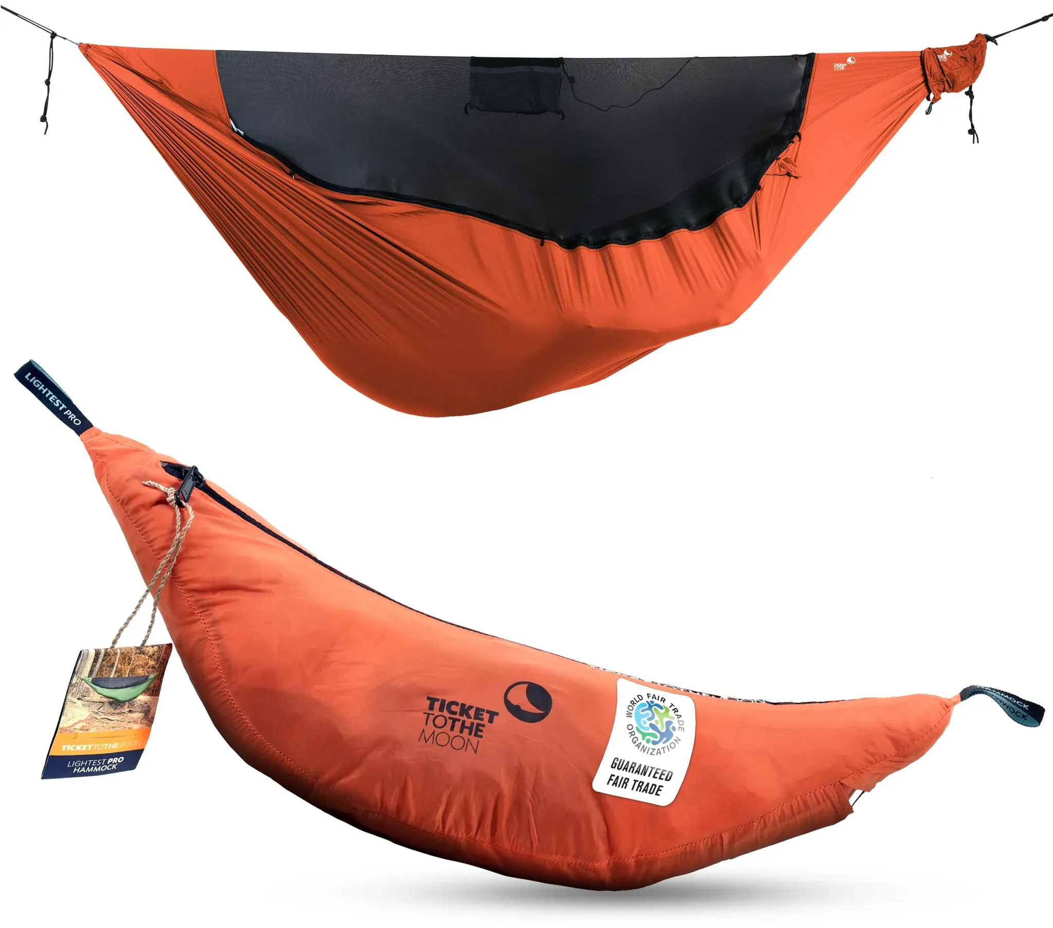 Ticket to the Moon - EAN: 0727670933642 - Du willst oft weit wandern und viel Gewicht einsparen? Dir ist sogar eine herkömmliche Reisehängematte zu schwer? Oder willst du vielleicht einfach nur eine Hängematte, die man wirklich überall... - bei campingwagner.de - aus Yadore Produktdaten Diese recycelte Hängematte ist eine umweltfreundliche und preiswerte Option für bewusste Käufer. ![]() Ticket To The Moon Lightest Hammock Recy NONE Oranssi
