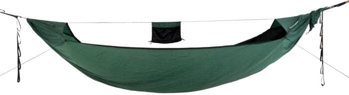 Ticket to the Moon - EAN: 0727670929386 - Die Pro Hammock wird nicht nur mit einer Firstlinie, sondern auch mit einem verstaubaren Insektennetz geliefert. Da das Hauptmaterial öko-Tex 100 zertifiziert ist, ist es auch bei direktem Hautkontakt rt unbedenklich. Das Insektennetz hat vier Zugköpfe, was die Verwendung einfach macht. Das Paket enthält auch eine raffinierte Organizer-Tasche, die Sie an der Kammlinie aufhängen können. - Das Insektennetz hat 200 Löcher pro Quadratzentimeter und ist somit unübersehbar - Material: 20-Denier-Ripstop-Nylon - 3 mm UHMPE-Kammlinie - Die Hängematte hat Schlaufen zum Aufhängen für eine Unterdecke - max. Belastung 100kg - Länge 325 cm - Breite 240 cm - Im Lieferumfang enthalten: 6-kN-Karabiner - bei scandinavianoutdoor.de - aus Yadore Produktdaten Diese Pro-Hängematte mit Moskitonetz ist eine ausgezeichnete Wahl für alle, die umfassenden Schutz und Komfort in der Natur suchen. ![]() ![]() Ticket to the Moon Lightest Pro Hängematte inkl. Mosquito-Netz, waldgrün