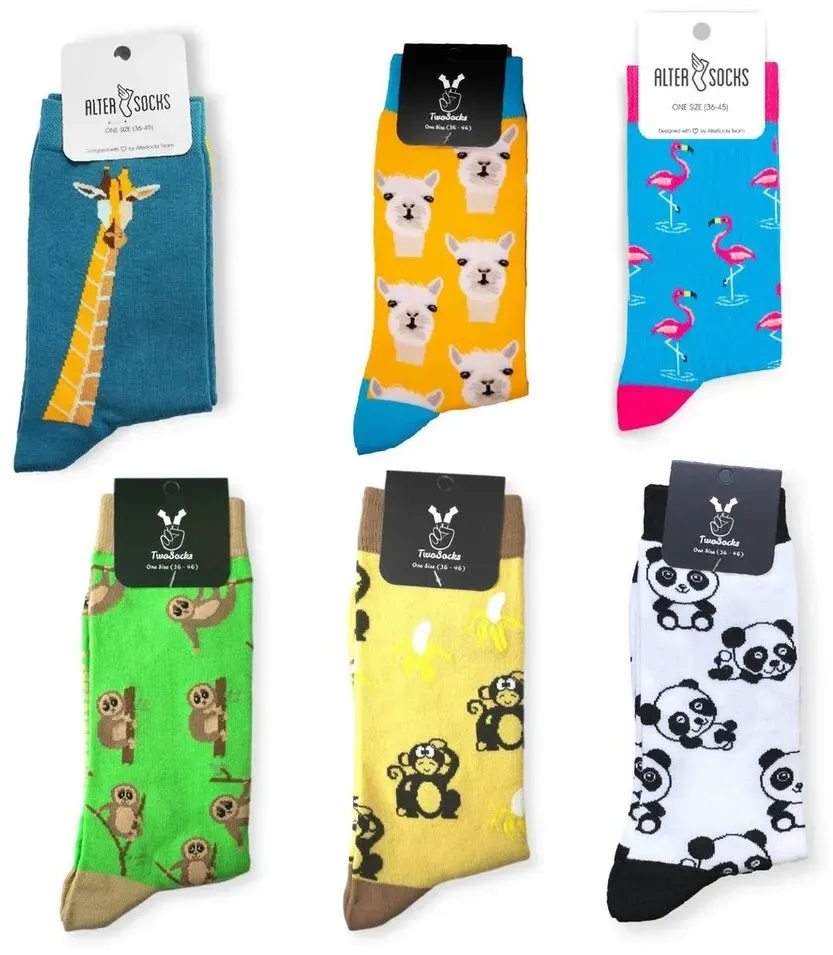 lieferbar-in 2-3 Werktagen bei dirTwoSocks Freizeitsocken Alpaka Socken Tier Motiv Socken, Damen und Herren, Einheitsgröße (6 Paar)