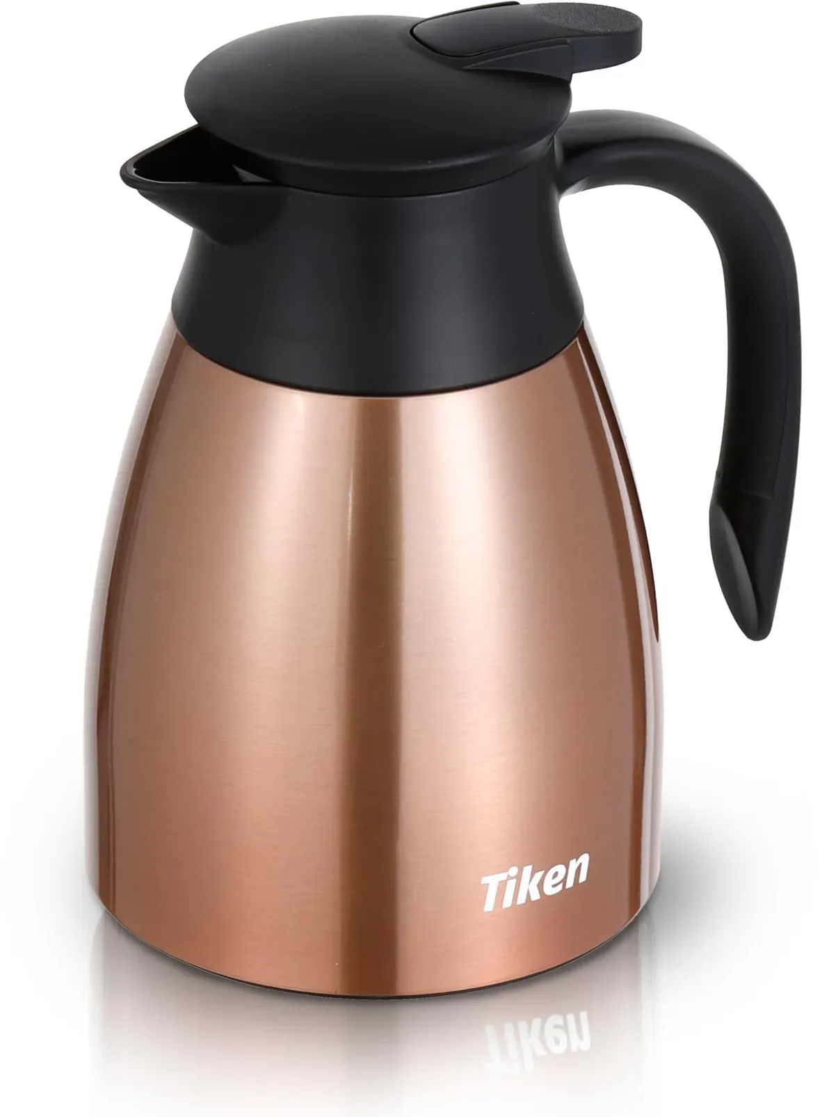Auf Lager Versand durch AmazonTiken 1L Thermoskanne aus Doppelwandingem Edelstahl Isolierkanne Kaffeekanne mit Quick Tip Verschluss