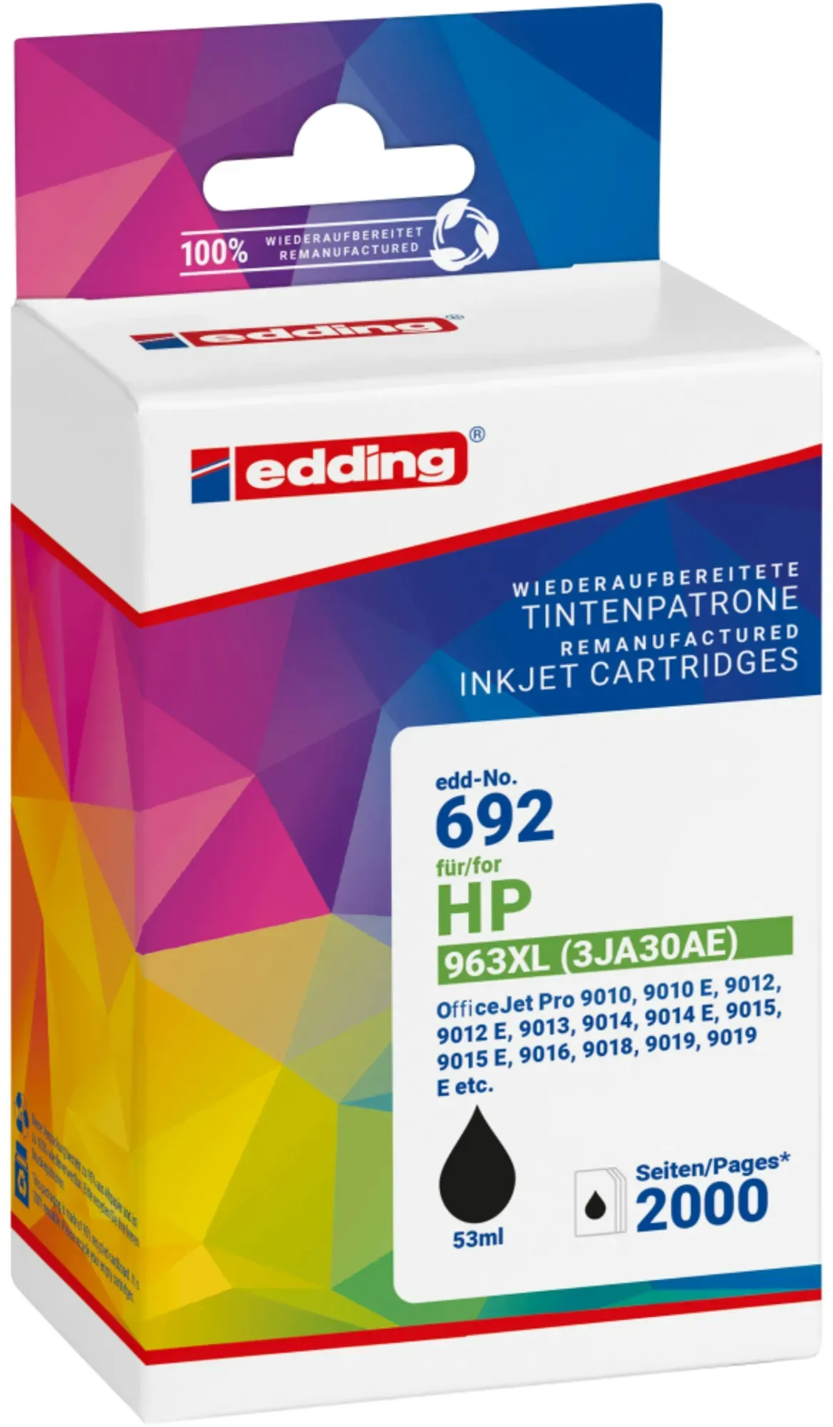Patrone HP 3JA30AE Inkjet-Kartuschen - EAN:4250884113365 - Kompatibel zu HP 3JA30AE / 963XL Tintenpatrone, schwarz, 47 ml für HP - OfficeJet Pro 9026, OfficeJet Pro 9015, OfficeJet Pro 9023, OfficeJet Pro 9010, OfficeJet Pro 9013, OfficeJet Pro 9012, OfficeJet Pro 9020, OfficeJet Pro 9022, OfficeJet Pro 9025, Off - gefunden von Kelkoo Diese Edding-Tintenpatrone ist eine hochwertige Alternative zum Original, die für ihre Zuverlässigkeit bekannt ist. ![]() ![]() edding Tintenpatrone 18-692 wie HP 963XL 3JA30AE sw