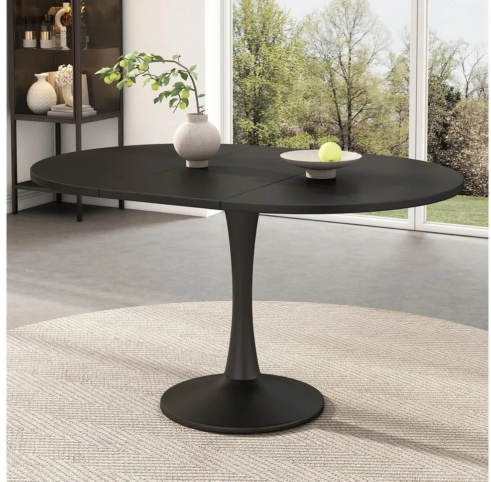 lieferbar-in 9-11 Werktagen bei dirFlieks Esstisch (1-St., erweiterbar 100-140cm Tischplatte, für 4-6 Personen), ausziehbar Küchentisch Oval/Rundtisch Schreibtisch Freizeittisch schwarz