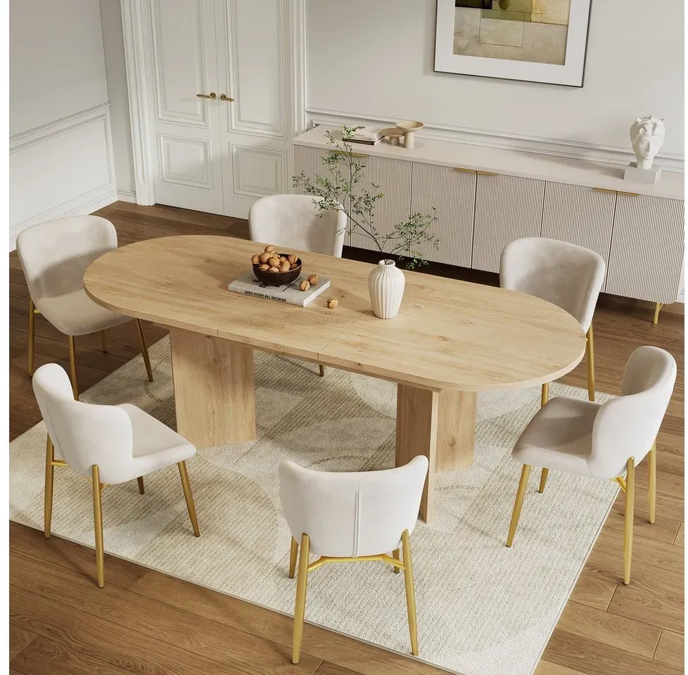 Kategorie: Essgruppen - i@home - GTIN:9118320369699 - Produktdetails Ausstattung , Inkl. Esstisch und 6 Stühlen, Eigenschaften , Robust, Langlebig, Stabil, Set beinhaltet , Esstisch, 6 Stühle, Serie , i@home Essgruppe, Material Optik , Einfach, Modern, Elegant, Materialzusammensetzung , MDF, Samt, Metall, Information Materialzusammensetzung , MDF, Samt, Metall, Farbe Farbe , Eichenfarbe, Farbhinweise , Bitte beachten Sie, dass bei Online-Bildern der Artikel die Farben auf dem heimischen Monitor von den Originalfarbtönen abweichen können., Sitzmöbel Farbe Sitzmöbel Gestell , Gold, Material Sitzfläche , Samt, Ausstattung & Funktionen Art Polsterung , Gepolstert, Anzahl Sitzflächen , 6 St., Tisch Anzahl Tische , 1 St., Funktionen Tisch , Ausziehbar, Form Tisch , Rechteckig, Materialstärke Tischplatte , 3 cm, Material Tisch Gestell , Metall, Stuhl Anzahl Stühle , 6 St., Lieferung & Montage Lieferzustand , Zerlegt, Hinweise Pflegehinweise , feucht abwischbar, Lieferumfang , 1x Esstisch, 6x Stühle, Aufbauhinweise , Benötigt Montage, Wissenswertes , Aufgrund manueller Messdaten kann ein Fehler von 1-3 cm auftreten. Dieses Produkt wird zur Lieferung in 3 Pakete aufgeteilt.Sie kommen möglicherweise nicht gleichzeitig an.Bitte warte geduldig. Aufgrund des Lichts kann es zu Farbunterschieden zwischen dem Produktbild und dem tatsächlichen Produkt kommen.Bitte beziehen Sie sich auf das tatsächlich erhaltene Produkt., Hinweis Maßangaben , Alle Angaben sind ca-Maße, - 775,99 Euro bei ... Dieser Rellgo Esstisch aus Wildeiche ist eine sehr hochwertige und handgefertigte Option für Liebhaber von Massivholzmöbeln. ![]() ![]() Rellgo Esstisch aus Wildeiche Holztisch mit D-Gestell Skandic-Design, Abgerundete Tischplatte, Geölte Oberfläche, Handgefertigt 90 cm x 160 cm