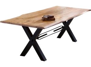 Wohnen - - Rustikaler Esstisch aus Akazienholz mit moderner Tischplatte in zwei Holzfarben, Ausstattung Funktionen: Art Gestell: U-Gestell, Art Tischplatte: Tischplatte fest montiert, Maßangaben: Breite: 200 cm, Tiefe: 100 cm, Höhe: 77 cm, Breite Tischplatte: 200 cm, Tiefe Tischplatte: 100 cm, Stärke Tischplatte: 2,6 cm, Hinweis Maßangaben: Alle Angaben sind ca.-Maße., Abstand zwischen Tischbeinen: 143 cm, Material: Material Tischplatte: Massivholz, Material Gestell: Metall, Farbe: Farbbezeichnung: nussbaumfarbig, Lieferung Montage: Aufbauhinweise: Selbstmontage mit Aufbauanleitung, Lieferumfang: Aufbauanleitung, Lieferzustand: zerlegt, Serie: Serie: Tops Tables - Versandkostenfrei: false - Sale: true - Lieferzeit: 2 Wochen - - Versand mit Hermes - Zahlungsoptionen: Paypal, Kreditkarte, Rechnung, Lastschrift, Sofortüberweisung, Ratenkauf - bei Baur Versand - gefunden von shopping24 Dieser Esstisch mit Akazienplatte und Metallgestell bietet eine moderne Ästhetik und ist eine solide Wahl für den Essbereich. ![]() Esstisch SIT, beige (natur, antikschwarz, antikschwarz, natur), B:160cm H:76cm T:85cm, Platte Akazie, Gestell Metall, Tische, mit Baumkante wie gewachsen