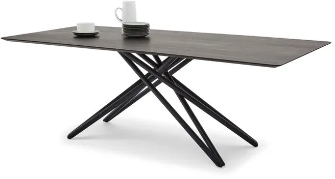 Lieferung in 11-13 WochenMusterring Esstisch HELMOND 200 x 100 cm Eiche schwarz - Spinnengestell Metall schwarz - Tischplatte Bootsform - Eiche massiv geölt schwarz - Länge 200 cm - Breite 100 cm - Höhe 76 cm - Dicke 3 cm