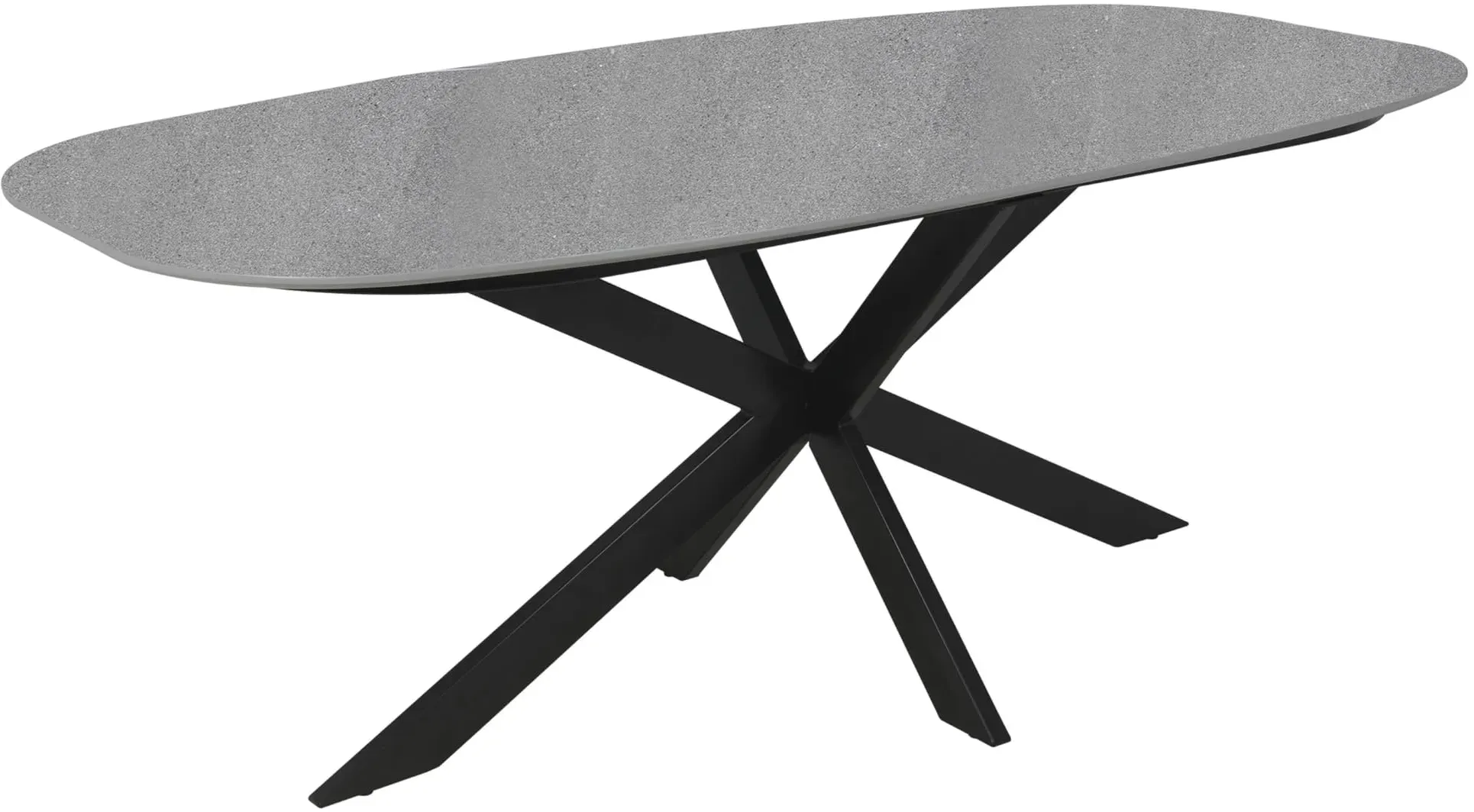 Gewöhnlich versandfertig in 4 bis 5 TagenbyLIVING Esstisch OVAL/Bootsform/Tischplatte in Naturstein-Optik grau/HPL-Beschichtung/Gestell Metall schwarz/Küchentisch/Esszimmertisch / 200 x 100, H 76 cm