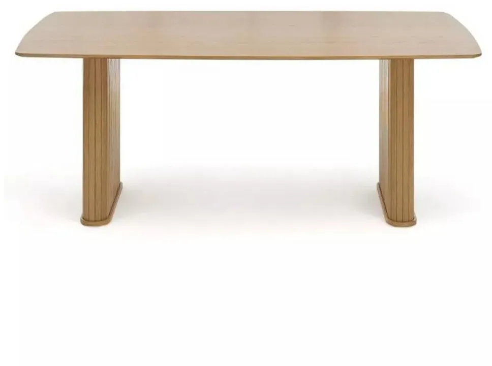 lieferbar-in 7-9 Werktagen bei dirLiadomo Esstisch Uriel, Tischplatte in Bootsform, Gestell in Lamellenoptik, Eiche Furnier beige