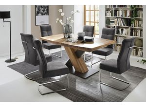 Wohnen - - Ein optisches Highlight ist der zeitlose Säulentisch in Bootsform. Maßgeblich zeichnet sich dieser Säulen-Esstisch durch seine außergewöhnliche Formsprache aus. Er ist in Bootsform gestaltet und vermittelt damit dekorative Akzente im Wohn- und Essbereich. Er passt problemlos in die bestehende Einrichtung und kann mit sämtlichen Wohnstilen kombiniert werden, denn er ist in verschiedenen Größen und auch Farben bestellbar. Ein echter Vorteil ist der Synchronauszug. Mithilfe dieser Auszugsfunktion lässt sich der Tisch bei Bedarf vergrößern. Zudem zeichnet er sich durch seine pflegeleichten Eigenschaften und seine robusten Merkmale aus. Bereichert die Einrichtung mit seiner ansprechenden Optik: der zeitlose Säulentisch in Bootsform., Produktdetails: Markeninformationen: MCA furniture, Details Tischplatte: verstellbar, Ausstattung Funktionen: Art Gestell: Säulengestell, Art Erweiterungselemente: Synchronauszug, Maßangaben: Breite: 140 cm, Tiefe: 90 cm, Höhe: 78 cm, Breite maximal: 220 cm, Breite minimal: 140 cm, Höhe maximal: 78 cm, Breite Tischplatte: 140 cm, Tiefe Tischplatte: 90 cm, Höhe Tischplatte: 78 cm, Stärke Tischplatte: 5 cm, Hinweis Maßangaben: Alle Angaben sind ca.-Maße., Material: Material Tischplatte: Massivholz, Material Gestell: Massivholz, Material Bodenplatte: MDF, Holzart: Wildeiche, Materialhinweis: Das Label des FSC® weist nach, dass Sie mit dem Kauf dieser Produkte vorbildliche Waldwirtschaft - nach den strengen sozialen und wirtschaftlichen ... Ein hochwertiger Esstisch aus massiver Eiche mit Spinnengestell und geölter Oberfläche, der durch sein edles Design besticht. ![]() ![]()