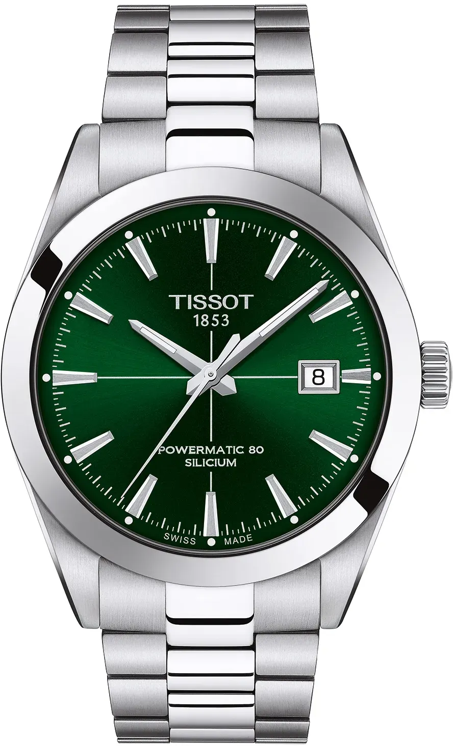 Verfügbarkeit: sofort lieferbar - Kategorie: Herrenuhren - TISSOT - GTIN:7611608298862 - moderne Swiss Made Herren-Automatikuhr, aus der Kollektion T-Classic, Automatikwerk Powermatic 80.811 mit 25 Steinen und Silizium-Spirale, Gangreserve bis zu 80 Stunden, Datumsanzeige, grünes Sunray-Zifferblatt, erhabene polierte Indexe, lumineszierende Zeiger und Stundenmarkierungen, Gehäuse aus 316L-Edelstahl, poliert und mattiert, verschraubter Glas-Gehäuseboden mit Sicht auf das Uhrwerk, gerändelte Krone mit Logo, kratzfestes Saphirglas, gewölbt und entspiegelt, Edelstahlband matt/poliert, Butterfly-Faltschließe mit Doppeldrücker und Logogravur, wasserdicht bis 10 bar, Durchmesser 40 mm, Höhe 11,5 mm - 925,00 Euro bei uhrcenter - gefunden von billiger.de Dieses Modell mit schwarzem Zifferblatt ist eine klassische und vielseitige Option, die bei mehreren Anbietern zum gleichen Preis verfügbar ist. ![]() ![]() Tissot T127.407.11.051.00 Herren-Armbanduhr Gentleman Powermatic 80 Silicium