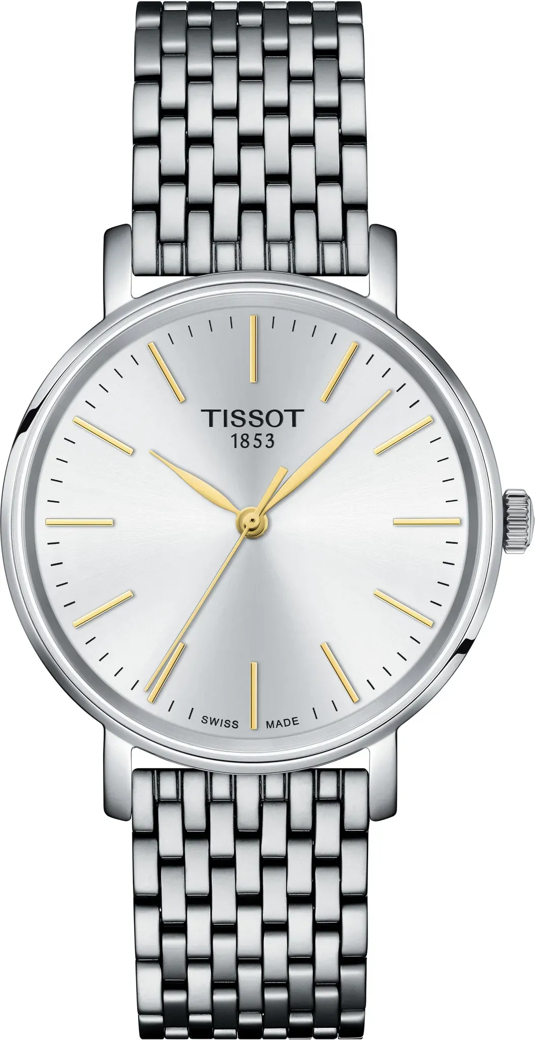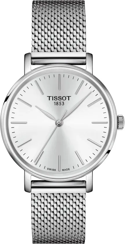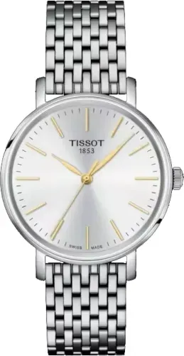 2 Händlerangebote bei billiger.de - Kategorie: Damenuhren - TISSOT - Swiss Made Quarzwerk Breite 34mm Kratzfestes Saphirglas Geschlecht Damen Herkunft Swiss Made Kollektion T-Classic Gehäuseform rund Wasserdicht bis zu einem Druck von 5 bar (50 m / 165 ft) Gehäusematerial 316L-Edelstahl Länge 34mm Bandanstoß 16mm Dicke 6,92mm Zifferblattfarbe weißsilber Ziffern Indizes Kaliber ETA F05.412 Zifferblatt (Stunde, Minute, Sekunde) Bandmaterial 316L-Edelstahl Bandfarbe silber Faltschließe silber Gang Original TISSOT Verpackungs Etui mit ausführlicher Bedienungsanleitung - GTIN:7611608304433 Christ.de Tissot Damenuhr Everytime Lady T1432101101100
