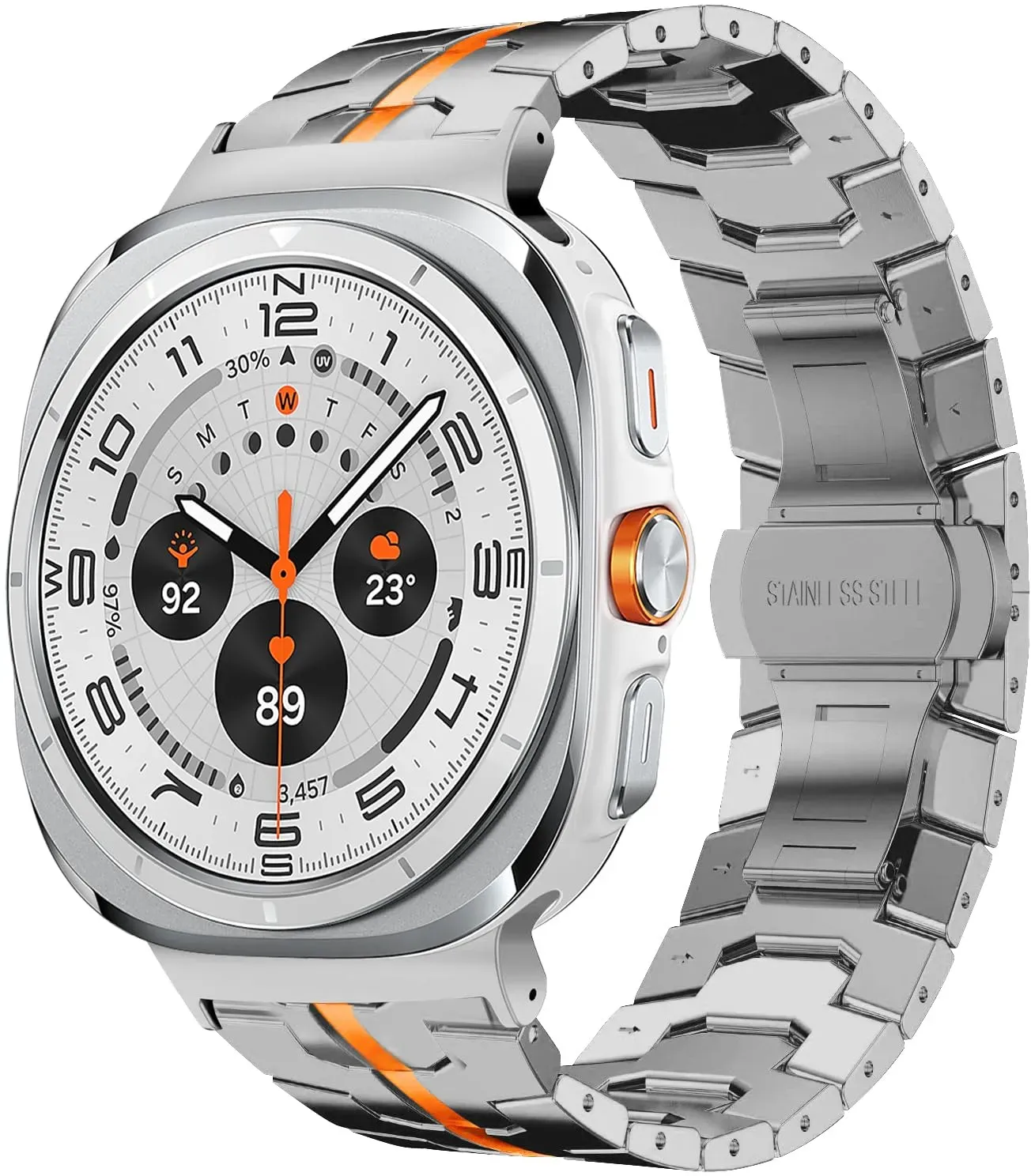 Kategorie: Smartwatch Zubehör - KADES - Kompatibel mit Galaxy Watch 7 6 5 4 FE: Das KADES Metallarmband ohne Lücke aus Edelstahl ist kompatibel mit Samsung Galaxy Watch 7 6 5 4 Armband 44mm 40mm,das Galaxy Watch FE Armband 40mm, das Galaxy Watch 6 Classic Armband 47mm 43mm, das Galaxy Watch 5 Pro Armband 45mm sowie das Galaxy Watch 4 Classic Armband 42mm 46mm geeignet. Bitte überprüfen Sie vor dem Kauf Ihr Galaxy Watch Modell. (Hinweis: Sie erhalten lediglich das Galaxy Watch Armband.) Keine Lücke Elegantes Freizeitarmband: Das nahtlose Edelstahlarmband lässt die Smartwatch perfekt in den eleganten, lässigen Business-Stil übergehen. Das gebürstete Edelstahlarmband passt zu Ihrer Kompatibel mit Samsung Galaxy Watch 7 6 5 4 FE Pro Classic 43mm 47mm 45mm 40mm 42mm 44mm 46mm Smartwatch Faltschließe: Der maßgeschneiderte Schmetterlingsverschluss integriert sich nahtlos ins galaxy watch armband. Die verdeckte Schließe öffnet sich per Knopfdruck auf beide Seiten ohne Werkzeug Verstellbare Länge: Installation Bilder und -videos finden Sie auf unserer Produktseite. Das galaxy watch 7 armband passend für Handgelenke von 14 23cm (5,5'-9,1'). Sollten Sie zusätzliche Verlängerungsglieder benötigen, kontaktieren Sie uns gerne, um ein Erweiterungsset zu erhalten Unser Versprechen: Lieferumfang: 1 x Galaxy Watch Ultra 47mm Armband, 1 x Werkzeug-Set, 1 x Anleitung.Genießen Sie 24 Monate kostenlosen Austausch oder Rückerstattung ohne RücksendungGenießen Sie 24 Monate kostenlosen Austausch ... Dieses Edelstahl-Metallarmband von HinZann ist für die Ultra-Modelle konzipiert und bietet eine hochwertige Optik in Titan/Orange. ![]() ![]() HinZann Uhrenarmband für Samsung Galaxy Watch Ultra 47mm 2025/2024, Edelstahl Metall Armbänder Damen Herren, Metall Ersatzarmband für Samsung Galaxy Watch 8/7 Ultra 47mm 2025/2024 - Titan/Orange