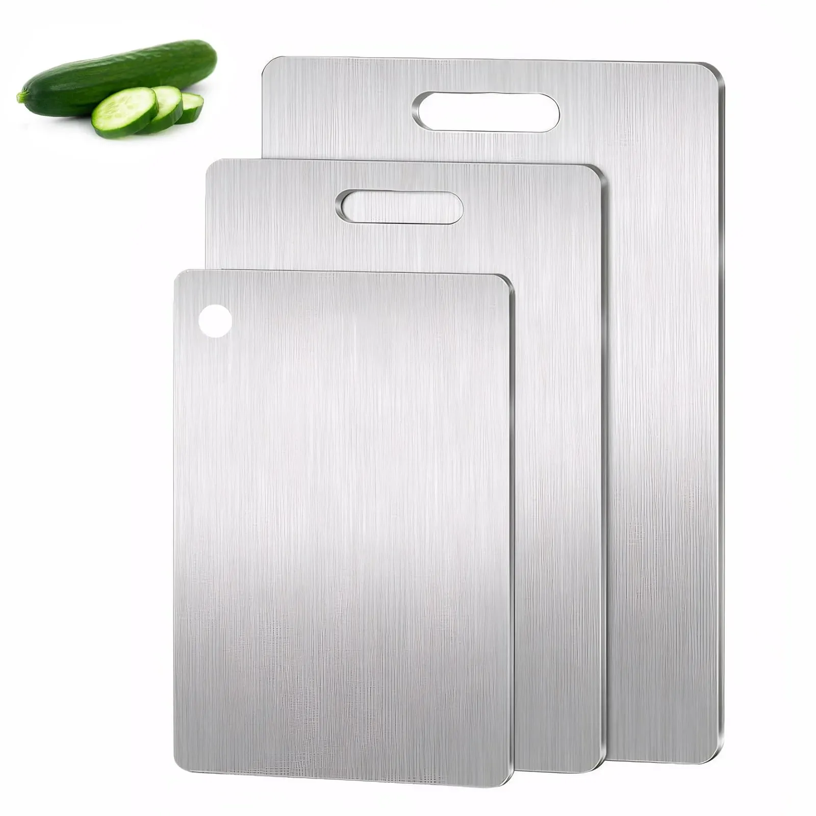 Kategorie: Schneidebretter - timenil - GTIN:0710329227315 - Hochwertiges Material: 100 % reines Titan bietet außergewöhnliche Haltbarkeit und eine lebensmittelechte Schneidefläche, die perfekt für den täglichen Gebrauch in der Küche ist Doppelseitiges Design: Beide Seiten dieser Schneidebretter sind voll nutzbar, bieten maximale Vielseitigkeit und längere Lebensdauer Einzigartiges Rillen-Design: Dieses Schneidebrett aus Edelstahl ist mit einer einzigartigen Rille ausgestattet, die den Saft beim Umgang mit Fleisch oder Gemüse genau abfangen kann, wodurch das Wasser nicht fließt, wodurch die Reinigung bequemer wird Innovative Funktionen: Ergonomische Griffe für einfaches Tragen und Reinigen, plus ein elegantes, modernes Design, das jede Kücheneinrichtung ergänzt Robuste Konstruktion: Verdicktes Titan-Material sorgt für Stabilität beim Schneiden und widersteht Verformungen oder Beschädigungen durch regelmäßigen Gebrauch - 23,50 Euro bei Amazon Marketplace Home - gefunden von billiger.de Ein Set aus drei Titan-Schneidebrettern in verschiedenen Größen, ideal für vielseitige Küchenanforderungen und Outdoor-Einsatz. ![]() ![]() defresit 3 Stück Titan Schneidebrett, 304 Edelstahl Schneidebrett, Titanium Cutting Board, 2025 Erstklassige Titan-Schneidebretter, für Die Küche Im Freien Camping Wandern (29x20cm, 34x23cm und 39x28cm)