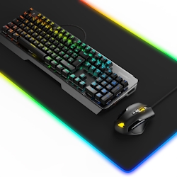 Kategorie: Tastaturen - Titanwolf - Das Titanwolf-Team rückt an zum Kampfpreis. Damit Du bei Deinen Turnieren und Schlachten voll abräumst! Drei, die perfekt miteinander harmonieren, sind jetzt zum Hammer-Setpreis erhältlich. Hol' Dir die ALUMAR-Gaming-Tastatur, zusammen mit der umfangreich ausgerüsteten SPECIALIST Gaming Maus. Führe die Maus über das XXL Titanwolf Mauspad in den Kampf und lasse Deine Gegner alt aussehen! Jetzt gibt es keine Ausreden mehr. | 303428 (303209 + 302645 + 303671) Die Titanwolf ALUMAR Tastatur ist ein Statement: exzellent verarbeitet, mit einer Trägerplatte aus Aluminium und ausgestattet mit hochpräzisen, mechanischen Tasten von Kailh Blue. Die vielen Lichtmodi sehen nicht nur klasse aus: Dank der frei konfigurierbaren Beleuchtung kannst Du wichtige Tasten optisch hervorheben und erfasst sie beim Spielen mit einem Blick. Ihre Qualität hebt die ALUMAR aus der Menge heraus, und die Features machen sie zur perfekten Steuerzentrale Deiner Gaming-Wettkämpfe. Die SPECIALIST Gaming Maus bringt das volle Leistungspaket mit: qualitativ hochwertige Omron-Switches, den PMW3336DM Sensor mit bis zu 10800 dpi, eine Polling-Rate von 125 Hz bis 1000 Hz. Sodann 12 programmierbare Tasten und 5 speicherbare Profile. Nicht zuletzt 7 DPI-Stufen, die Du, unverdeckt von der Hand, an der seitlichen Leuchtskala ablesen kannst. Mit 6 Tuninggewichten zu je 4 Gramm bestimmst Du grammgenau, mit welchem Kampfgewicht die SPECIALIST ins Gefecht zieht. Kompatibel zu MS Windows ... Dieses Set für 104.95 Euro bietet eine mechanische Tastatur, Maus und ein XXXL Mauspad, perfekt für Gamer, die viel Platz benötigen. ![]() Titanwolf Tastatur-, Maus- und Mauspad-Set, Mechanisches Keyboard, Mouse XXXL Mousepad Gaming Bundle