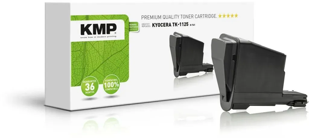 6 Händlerangebote bei billiger.de - Kategorie: Toner - KMP - Tonerkartusche KMP TK1125. Druckfarbe: Schwarz. Original oder Kompatibel: Kompatibel. Kompatibel mit: Kyocera Ecosys FS-1061DN, FS-1325MFP. Referenznummer Kurz: TK1125. Original-Hersteller-Nr.: 1T02M70NL0. Breite: 113 mm. Tiefe: 55 mm. Hohe: 263 mm. Gewicht ca.: 249 g. Seitenleistung ca.: 2500. Lieferumfang: 1 x Tonerkartusche. - GTIN:4011324282405 Dieser Green2Print Toner bietet eine gute Balance zwischen Preis und Qualität für kompatible Produkte. ![]() Green2Print Toner schwarz ersetzt Kyocera TK-1125, 1T02M70NLV passend für Kyocera FS1061DN, FS1325MFP