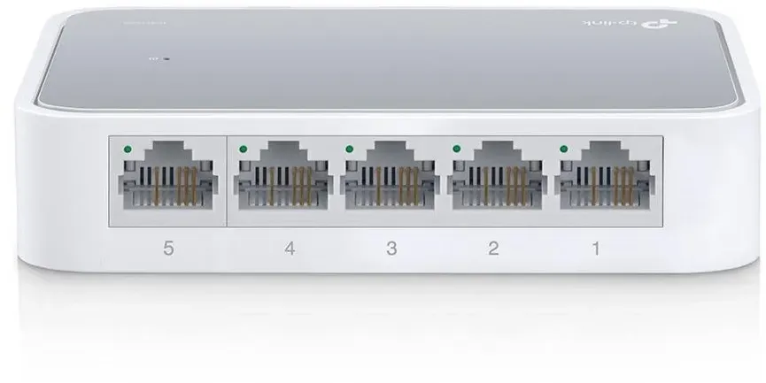 Auf Lager Versand durch AmazonTP-Link TL-SF1005D 5-Port Fast Ethernet-/Netzwerk-/LAN Switch (10/100Mbit/S, Automatische Geschwindigkeits- und Duplexanpassung, Plug-und-Play, Auto-MDI/MDIX, lüfterlos) Weiß