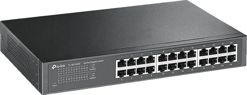 Auf Lager Versand durch AmazonTP-Link TL-SG1024D 24 Port Gigabit Netzwerk Switch (Rackmount, 48Gbit/s Switching-Kapazität, 24*RJ-45 Ports, Metallgehäuse, IGMP-Snooping, unmanaged, Plug-und-Play) schwarz