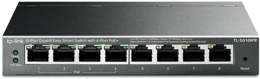 Auf Lager Versand durch AmazonTP-Link 8 Port Gigabit PoE Switch 4 PoE Port @ 55W Easy Smart Plug & Play Lebenslanger Schutz Robustes Metall mit geschirmten Ports Unterstützt QoS, Vlan, IGMP und Link Aggregation (TL-SG108PE)