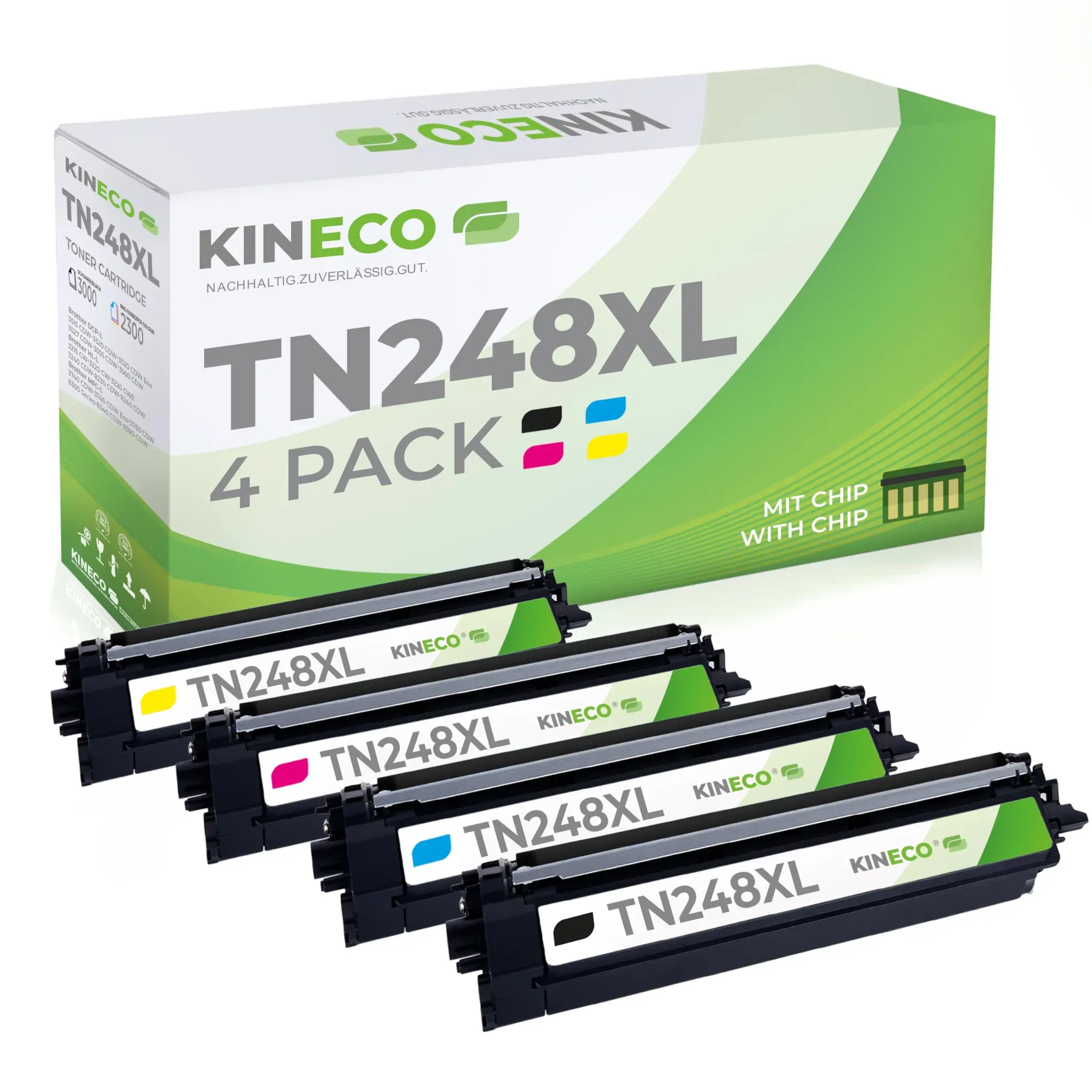 Kategorie: Toner - Kineco - GTIN:4063667055994 - geeignet für folgende Brother Geräte:DCP-L3520CDW DCP-L3520CDWE HL-L8230CDW MFC-L3740CDW HL-L3220CW, MFC-L8390CDW, DCP-L3555CDW MFC-L3760CDW DCP-L3560CDW DCP-L3515CDW HL-L3220CWE MFC-L3740CDWE HL-L3240CDW HL-L3215CW HL-L8240CDW MFC-L8340CDW und für alle Geräte die laut Bedienungsanleitung TN248XLBK TN248XLC TN248XLM TN248XLY TN248XL-BK TN248XL-C TN248XL-M TN248XL-Y verwenden dürfen Lieferumfang: 1 Stück Toner Black, je 1 Stück Toner Cyan, Magenta, Yellow Seitenleistung der Kartuschen: Schwarz 3.000 Seiten, Cyan-Magenta-Yellow je 2.300 Seiten bei 5% Deckung kompatibles Produkt mit Chip und voller Funktion der Füllstandsanzeige - 68,90 Euro bei Amazon Marketplace Automotive - gefunden von billiger.de ![]() ![]() NMJETPRINT 4PCS TN248XL Tonerkartusche Kompatibel mit Brother TN248 XL TN248XLCMYK Toner Verwendung für Brother MFC-L3760CDW MFC-L3740CDW Toner MFC-L3740CDWE DCP-L3560CDW TN 248 DCP-L3520CDWE MFC-L839