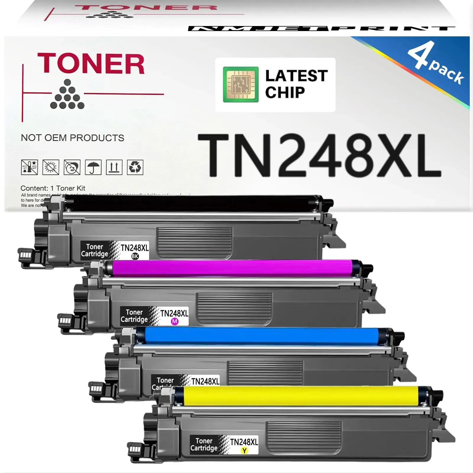 Auf Lager Versand durch AmazonNMJETPRINT 4PCS TN248XL Tonerkartusche Kompatibel mit Brother TN248 XL TN248XLCMYK Toner Verwendung für Brother MFC-L3760CDW MFC-L3740CDW Toner MFC-L3740CDWE DCP-L3560CDW TN 248 DCP-L3520CDWE MFC-L839