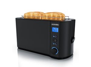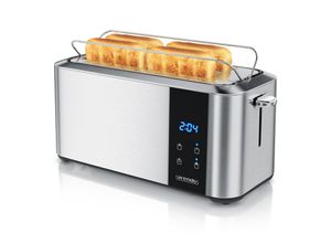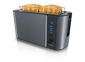 Toaster Wohnen Küchen Küchenkleingeräte - - SEVERIN Langschlitz-Toaster AT 2590, 1.400 W, für 4 Scheiben oder 2 große Brotscheiben, Brotscheibenzentrierung, Brötchenaufsatz, Edelstahl/Schwarz - Versandkostenfrei: false - Lieferzeit: 2 Tage - product_flag_accessory_wohnen: true - Sofort verfügbar: true - Hersteller-Farbe: schwarz silber - Farbe: Hellgrau Schwarz - - - bei Schäfer Shop - gefunden von shopping24 Ein preisgünstiger Arendo Langschlitz-Toaster mit Display und Auftaufunktion, der grundlegende Bedürfnisse gut abdeckt. ![]() Arendo Toaster für 4 Scheiben Langschlitz, 1500W, mit Display, Doppelwandgehäuse wärmeisolierend, Brötchenaufsatz, Auftaufunktion, Grau