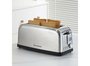Der angezeigte Preis könnte seit dem letzten Update gestiegen sein - EAN: 4008146251504 - Einstellbarer Bräunungsgrad, zentriertes Rösten der Brotscheiben, eine Defrosterstufe zum Auftauen - der kleine edle Toaster mit doppelwandigem Edelstahl-Gehäuse lässt keine Wünsche offen. Der Temperatursensor bewahrt vor verbrannten Scheiben. - Zustand: NEW - bei Metro.de - gefunden von Buycentral Der Sommertal Toaster ST1500 XXL bietet ein Retro-Design und ein Display mit Restlaufanzeige für 4 Scheiben. ![]() Sommertal Toaster ST1500 XXL, 4 Scheiben mit Brötchenaufsatz, Display mit Timer und Restlaufanzeige, Langschlitztoaster Restlaufzeit, Retro Design Langschlitz Edelstahl 1500W