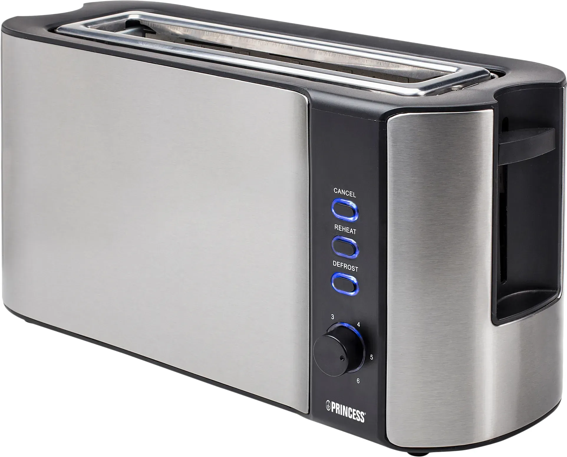 Zustand: Neu - Toaster - Princess - 01.142353.01.001 - EAN: 8712836329522 - Edelstahl-Akzente Lange Toastkammern 6 Einstellbare Bräunungsstufen Auftaufunktion Stoppfunktion Aufwärmfunktion Integrierter Brötchenaufsatz Number_Of_Pieces: 1 - bei Amazon.de Dieser Long Slot Toaster ist mit 31.90 Euro eine preiswerte Option für längere Brotscheiben. ![]() ![]() Princess Long Slot Toaster
