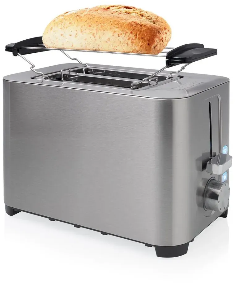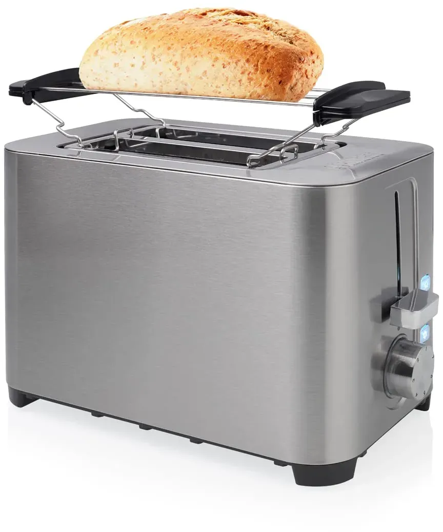 6 Händlerangebote bei billiger.de - Kategorie: Toaster - Princess - Elegantes und schlankes Design: Verleihen Sie Ihrer Küche mit dem stilvollen Toaster Wave einen Hauch von Retro-Charme. Das beige Design passt perfekt in jedes moderne oder klassische Ambiente. 7 einstellbare Bräunungsstufen: Genießen Sie Toast genau nach Ihrem Geschmack €“ von goldgelb bis knusprig braun €“ mit präzisen 7-Stufen-Einstellungen und leistungsstarken 930 Watt. Praktische Doppelschlitze: Toasten Sie zwei Scheiben gleichzeitig mit gleichmäßiger Wärmeverteilung €“ ideal für hektische Morgen, Familienbrunches oder schnelle Snacks. Einfache Reinigung: Dank der herausnehmbaren Krümelschublade ist die Reinigung ein Kinderspiel. Halten Sie Ihre Küche mühelos sauber, Toast für Toast. Intelligente Funktionen: Auto-Zentrierung, Auftauen und Stoppen sowie ein hoher Liftgriff sorgen für eine sichere, einfache Toastentnahme €“ jedes Mal. - GTIN:8712836996410 Dieser Toaster ist mit 29 Euro ein sehr preiswertes Modell mit Brötchenaufsatz. ![]() ![]() Princess 142400 Toaster mit Brötchenaufsatz Edelstahl