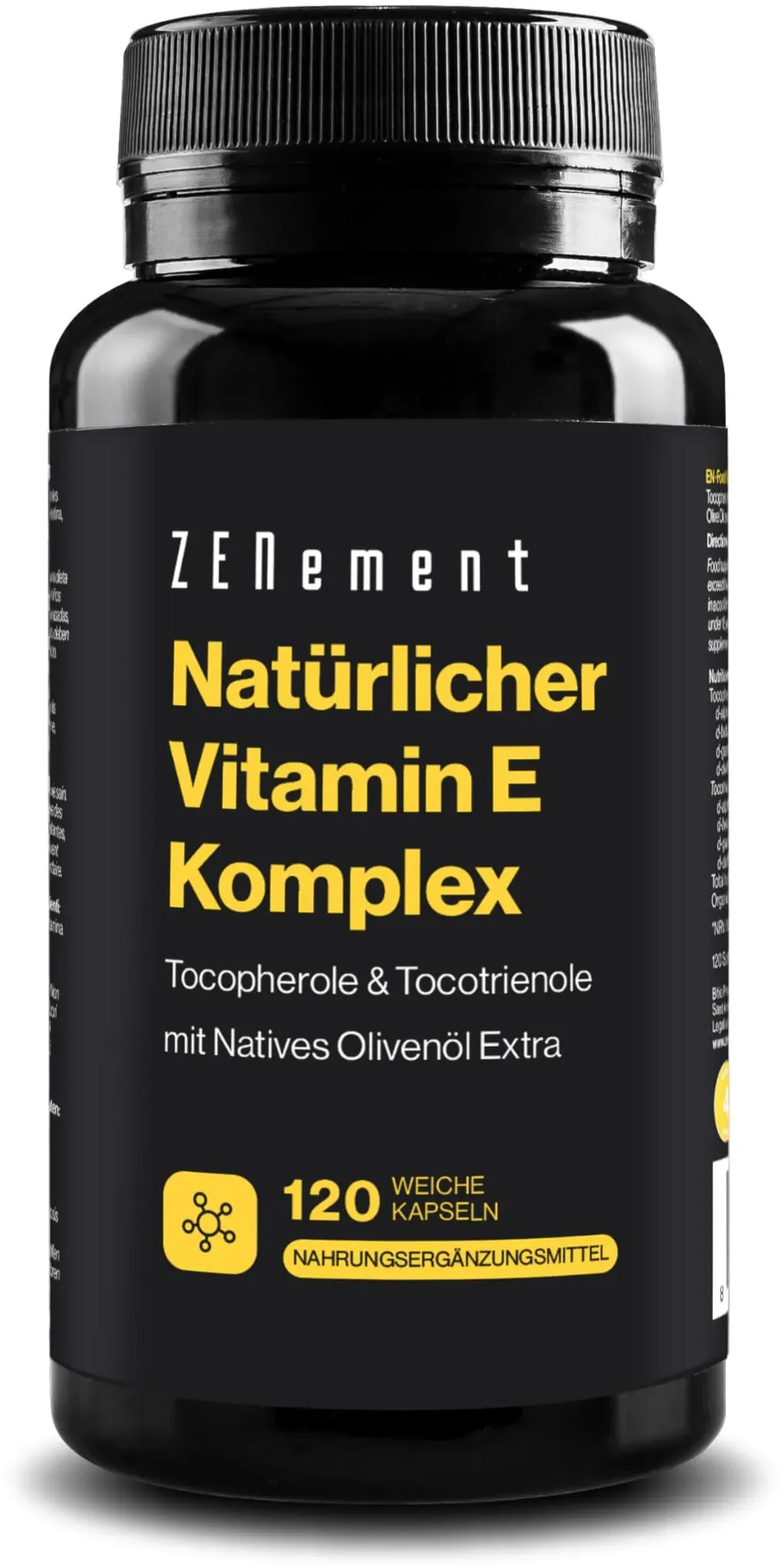 Kategorie: Nahrungsergänzungsmittel - Vitamineule - GTIN:4260558641308 - HOCHDOSIERT & HOCHWERTIG Unsere Vitamin E Kapseln liefern 100 mg / 150 i. E. natürliches Vitamin E (D-alpha-Tocopherylacetat), gewonnen aus Pflanzenöl und zu 100 % natürlichen Ursprungs. Die hochdosierte Formel bietet eine einfache Möglichkeit, die tägliche Vitamin E-Zufuhr zu ergänzen und unterstützt eine ausgewogene Ernährung. EFFEKTIVER WIRKSTOFF Unser bioverfügbares, pflanzliches Vitamin E ist gut verträglich und ideal zur täglichen Ergänzung. Jede Dose enthält 60 Kapseln, die bei Bedarf geöffnet und das Pulver in Wasser oder Saft aufgelöst werden kann. Vitamin E trägt dazu bei, die Zellen vor oxidativem Stress zu schützen und wird geschätzt als Teil einer ausgewogenen Ernährung. OHNE ZUSATZSTOFFE & VEGAN Unsere Vitamin E Kapseln Kapseln sind frei von sämtlichen Zusatzstoffen. Hierzu zählen z. B. Füllstoffe wie mikrokristalline Cellulose oder Magnesiumstearat, jegliche Hilfsstoffe, Presshilfen, Magnesiumsalze, Calciumphosphat, Ethylenoxid, Siliziumdioxid, PEG und Carrageen. Ebenfalls verzichten wir auf Gentechnik, Farbstoffe, Aromen, Zucker, Laktose und Gluten. Unsere Vitamin E Kapseln sind frei von sämtlichen Allergenen, für Kinder geeignet und zu 100% vegan. IN DEUTSCHLAND HERGESTELLT & LABORGEPRüFT Die Produktion erfolgt nach der Sicherheitsnorm FSSC 22000, der führenden Zertifizierung für Lebensmittelsicherheit in Deutschland. Jede Charge und alle verwendeten Rohstoffe werden von ... Dieser natürliche Vitamin E Komplex bietet Tocopherole und Tocotrienole in Weichkapseln mit Olivenöl. ![]() ![]() Natürlicher Vitamin E Komplex, Tocopherole & Tocotrienole, 120 Weichkapseln | mit Natives Olivenöl Extra | Antioxidans | 100% natürliche Zutaten, Frei von Soja | Zenement