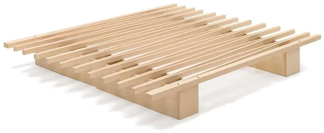 Kategorie: Betten - Tojo - GTIN:0040232884436 - Tojo V Bett: Völlig zurecht hochbeliebt In drei Schritten zum perfekten Bett. Das klingt nicht nur verheißungsvoll, es ist auch eine grandiose Idee des Designers Roy Schäfer. Mit dem Tojo V Bett wird sie Realität. Und so simpel ist der Aufbau des Tojo V Betts. Der Lieferumfang beinhaltet zwei Fußteile und ein Lattenrost in Ziehharmonika-Bauweise. Beide Fußteile parallel zueinander aufstellen. Lattenrost auflegen und in die Zapfen der Fußteile legen. Bett auf die gewünschte Länge ziehen zwischen 90 cm und 172 cm. Nur noch eine passende Matratze darauf legen, beispielsweise die Tojo Ergo 90 Matratze, die in unterschiedlichen Größen verfügbar ist und im Nu können Sie oder Ihre Gäste ins Reich der Träume reisen. Das Lattenrost ist mit dem Ziehharmonika-artigen System so simpel wie genial erdacht. Aufbau und Abbau sind im Handumdrehen erledigt. Drum eignet sich das V-Bett perfekt als Gästebett und passt sich jeder noch so kleinen Single-Wohnung an. Buche Multiplex: Was ist das? Eine spezielle Verleimung von Schichten aus Buchenholz sorgt dafür, dass Möbel aus diesem Material äußerst robust, strapazierfähig und langlebig sind. Anstreichen und furnieren sind nicht erforderlich, weil das Produkt für sich bereits natürlich wirkt. Passend dazu empfehlen wir: Tojo Ergo 90 Matratze Tojo Ergo Falt Faltmatratze Tojo Lehn Rückenkissen Tojo Cube Nachttisch - 594,15 Euro bei smartambiente.de - gefunden von billiger.de ![]() ![]() Tojo - 'v' Bett, 90 bis 180 cm