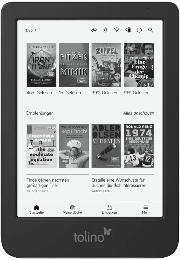 Beliebtheit und MarkenTolino ist eine bekannte Marke im Bereich der eBook-Reader und bietet eine Vielzahl von Modellen, die sich in Ausstattung und Komfort unterscheiden. Der Tolino Shine 5 ist besonders beliebt für seine Kompaktheit und die gute Lesbarkeit des Displays. Er steht in direkter Konkurrenz zu anderen günstigen eBook-Readern wie dem Kindle. PreisbereichDer Tolino Shine 5 liegt in einem moderaten Preisbereich. Er ist etwa 20 Euro teurer als einige andere Modelle, bietet aber mehr Funktionen und eine bessere Ausstattung. Wenn Sie nach einem ähnlichen Gerät suchen, sollten Sie sich im Bereich von etwa 100 bis 150 Euro umsehen. Alternativen
