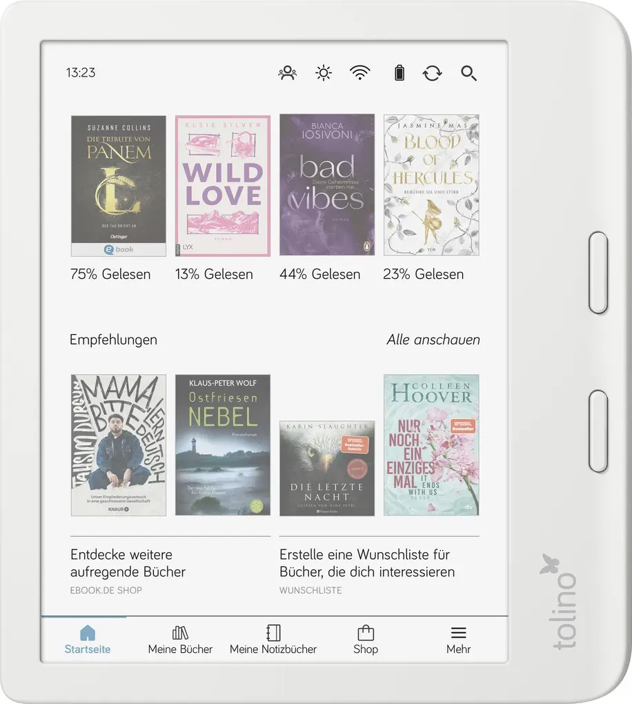 4 Händlerangebote bei billiger.de - Kategorie: E-Book-Reader - Tolino - NEU: 7 Zoll Farbdisplay: 4.096 Farben für lebendige Inhalte NEU: Alles Wichtige festhalten: notieren, markieren und gestalten mit dem neuen tolino stylus NEU: Hörbuch-Wiedergabe: Hörbücher genießen via Bluetooth-Kopfhörer oder -Lautsprecher Praktische Blättertasten: für noch bequemeres Vor- und Zurückblättern Automatische Display-Rotation: flexibles Lesen im Hoch- und Querformat, egal ob Links- oder Rechtshänder Lesen bei allen Lichtverhältnissen: mit smartLight Beleuchtung anpassen 32 GB interner Speicher: Platz für bis zu 24.000 eBooks oder 150 Hörbücher [1] Wasserschutz [2] : sorgenfreies Lesen in der Badewanne oder am Pool Wochenlange Akkulaufzeit [3] : stundenlanges Lesen ohne häufiges Aufladen Jetzt wird€™s bunt Erleben Sie Ihre Lieblingsgeschichten jetzt auch in Farbe. Egal ob einzigartiges Buchcover, illustriertes Kinderbuch, appetitliche Rezeptideen oder atemberaubende Urlaubsziele, mit dem neuen Farbdisplay und bis zu 4.096 darstellbaren Farben erweckt der tolino vision color Ihre Lieblingsinhalte erstmals in Farbe auf völlig neue Art zum Leben. Ihr Lieblingstitel besteht rein aus Text? Kein Problem! Das neue Display liefert natürlich auch weiterhin Schwarz-Weiß- Inhalte kontrastreich und hochauflösend. Halten Sie Notizen, Ideen u. v. m. festoder highlighten Sie wichtige Textpassagen Der tolino vision color ist unser erster eReader, der auch ein Notizbuch ist. Verwenden ... Ein weiteres Angebot für den Tolino Vision Color 32GB [7 Wifi Only] Schwarz von buyzoxs.de für 180.29 Euro. ![]() Tolino Vision Color 32gb [7' Wifi Only] Schwarz